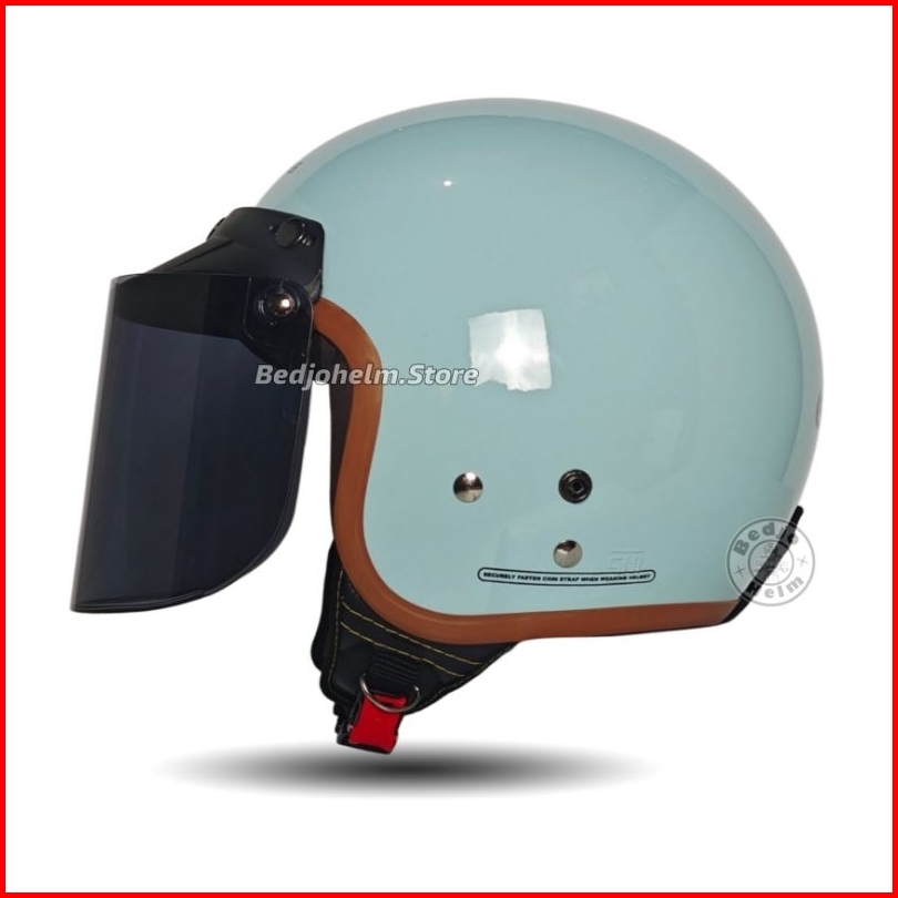 Helm Bogo Retro Dewasa List Coklat Kaca Cembung Full Leher Sni