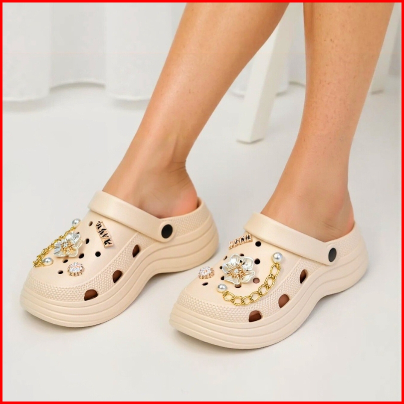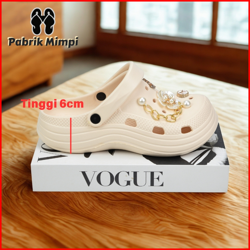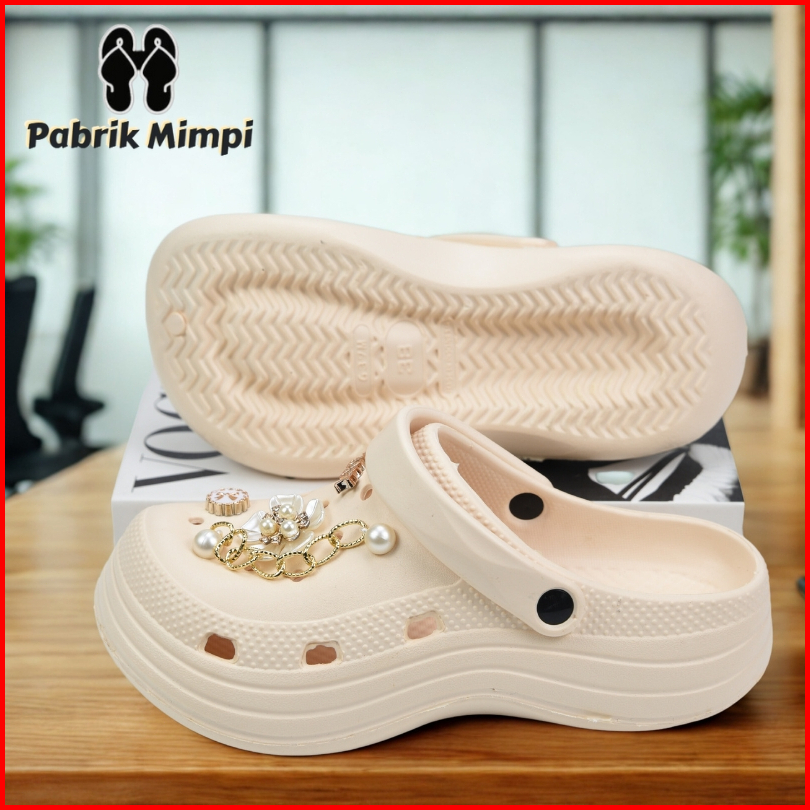 Sandal Baim Fuji Wedges Wanita Dewasa Kodok Jibitz Rabit Tali Belakang Model Kekininan Karet Ringan Anti Licin