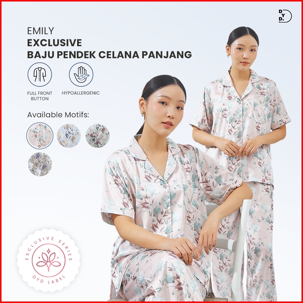Dyd Label Emily Piyama Premium Exclusive Series Setelan Baju Pendek Celana Panjang Bahan Silk Lembut Adem Nyaman Busui F