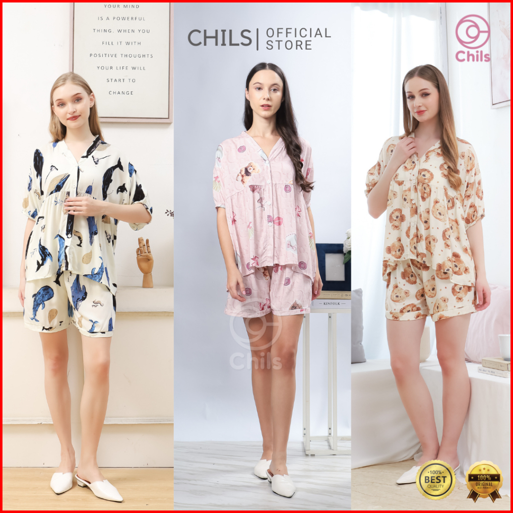 Chils - Setelah Piyama Celana Pendek Lengan Pendek Premium Busui Friendly Lembut Halus Adem Nyaman