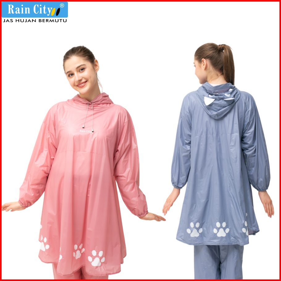 Rain City Jas Hujan Poncho Celana Kitty Aesthetic Lucu Pink Pastel Pvc 70073 Anti Rembes