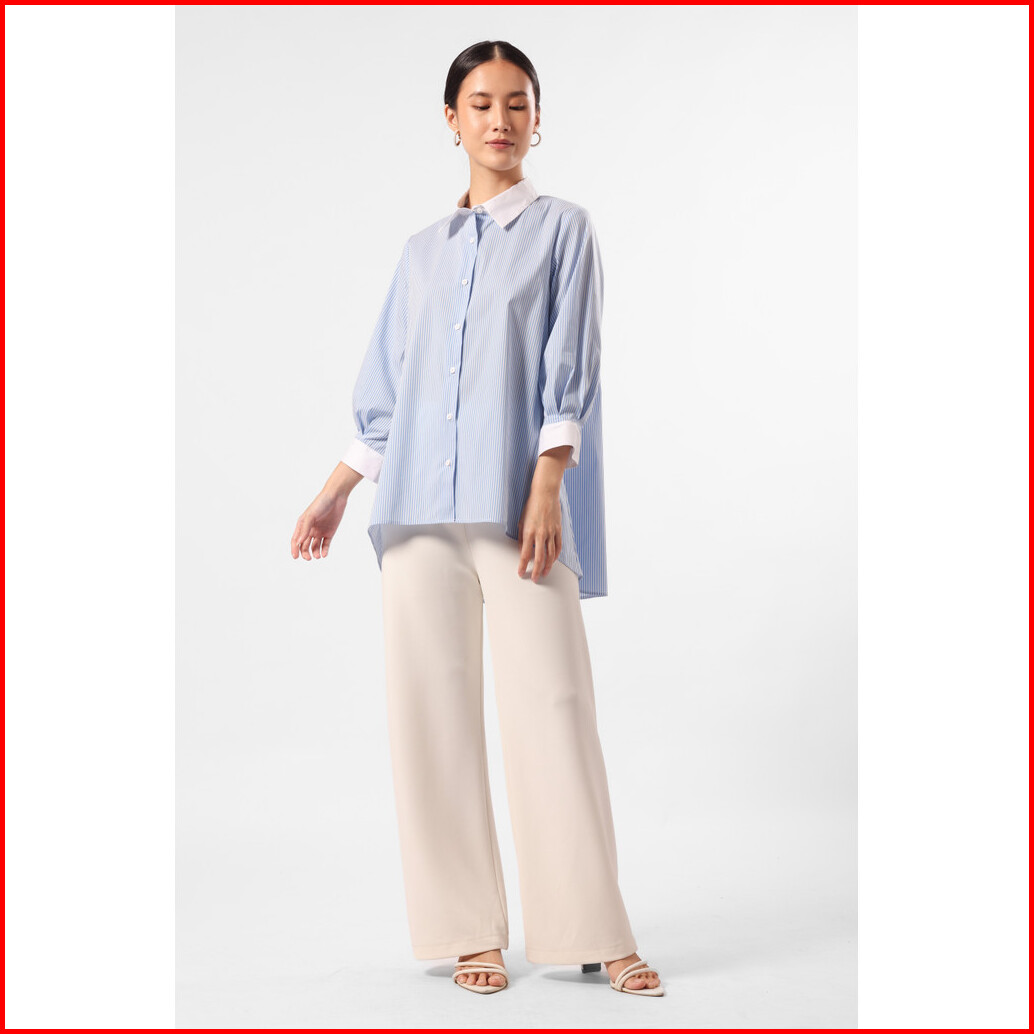 Minimal - Shafira - Kemeja A Line Wanita Motif Garis - Blue