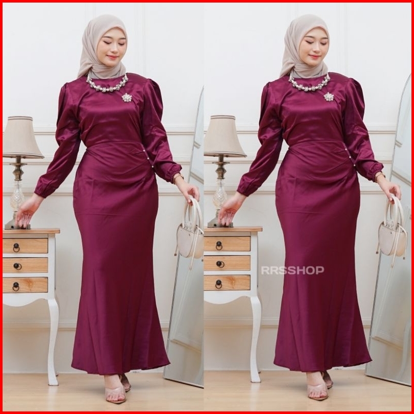 Elora Dress Satin Silk Premium Wanita Kondangan Muslim Gamis Body Fit Viral Mermaid 2025