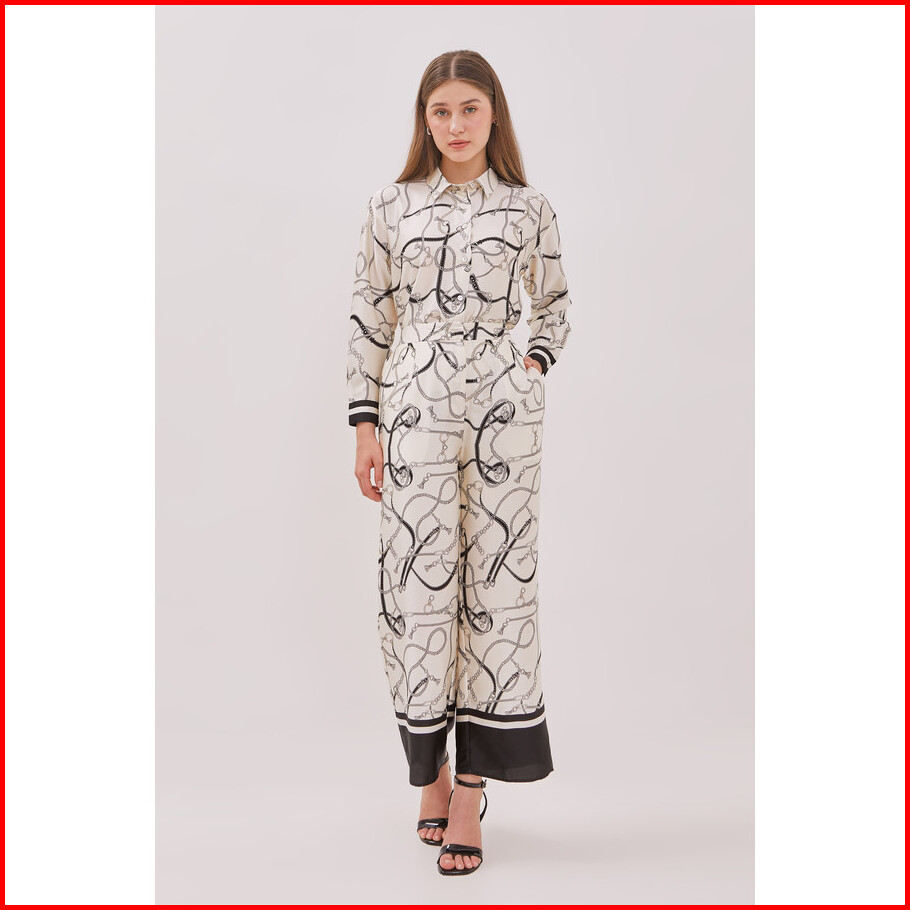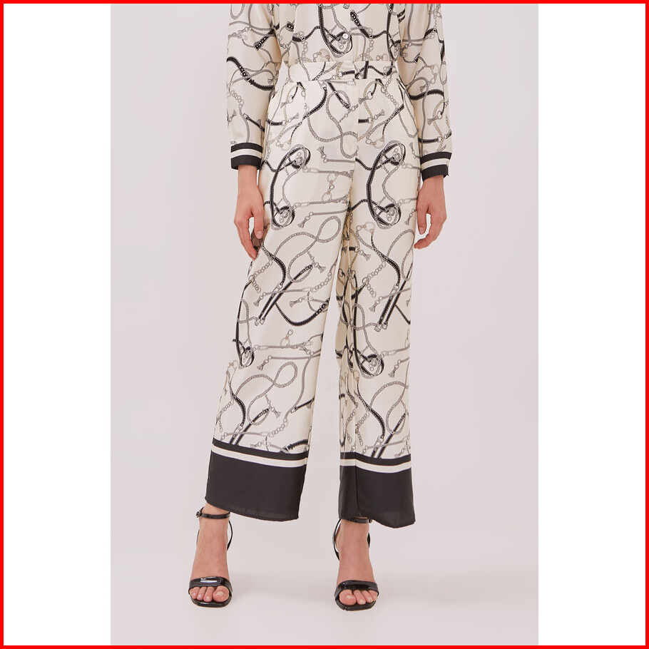 Minimal - Chaineste - Chain Print Satin Trouser Wanita - Beige