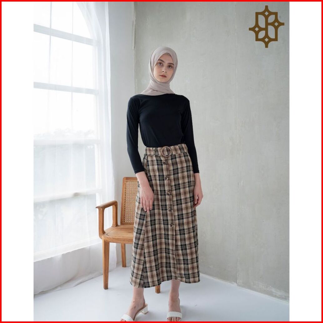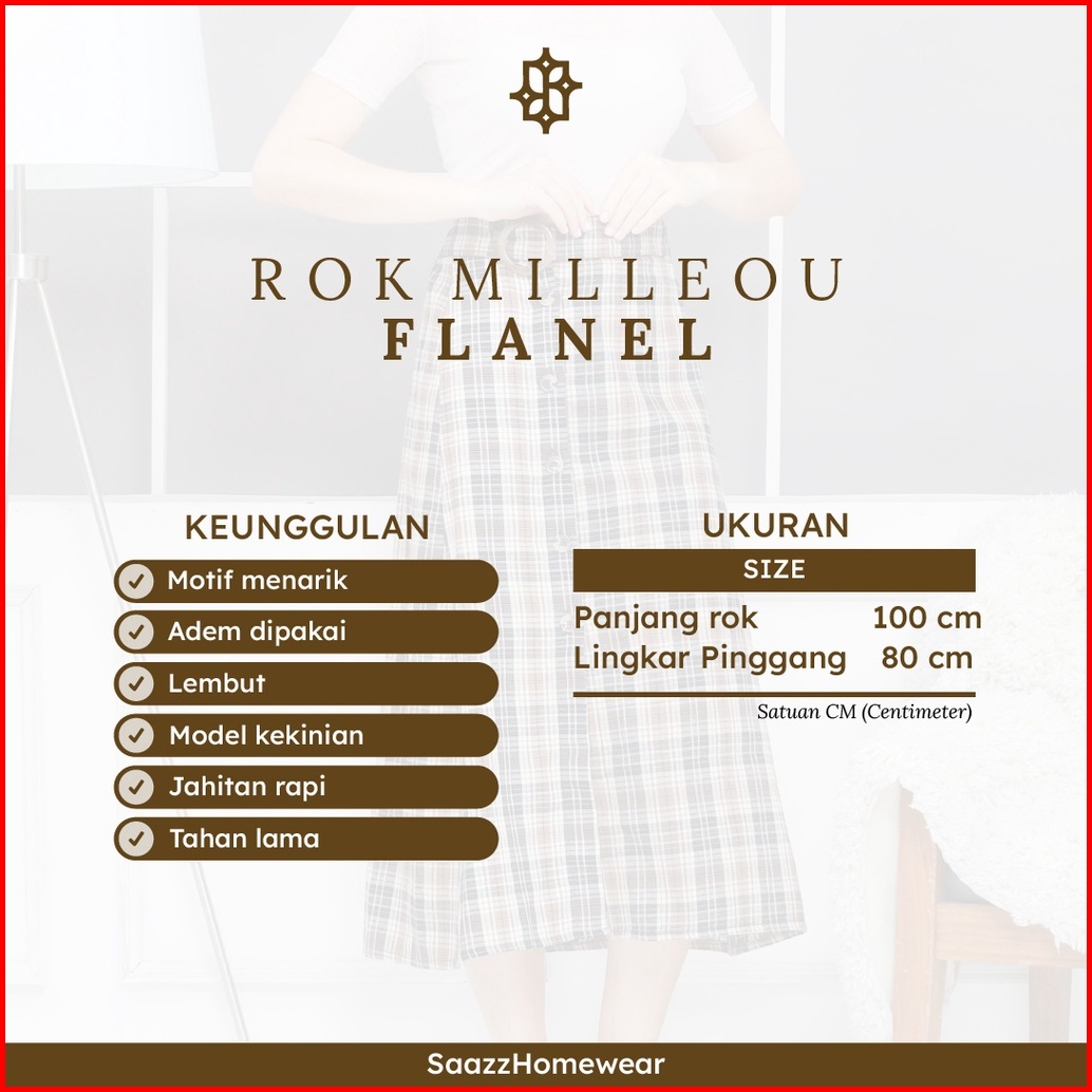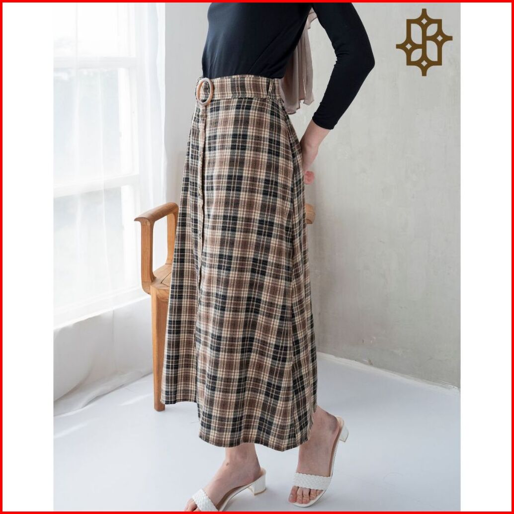 Saazz Milleou Long Skirt Rok Kotak Kotak Bawahan Pakaian Wanita Dewasa Korea Style