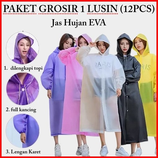 Isi 12 Pcs 1 Lusin Jas Hujan Eva Tebal Dewasa Jas Hujan Dewasa Poncho Mantel Hujan Lengan Karet
