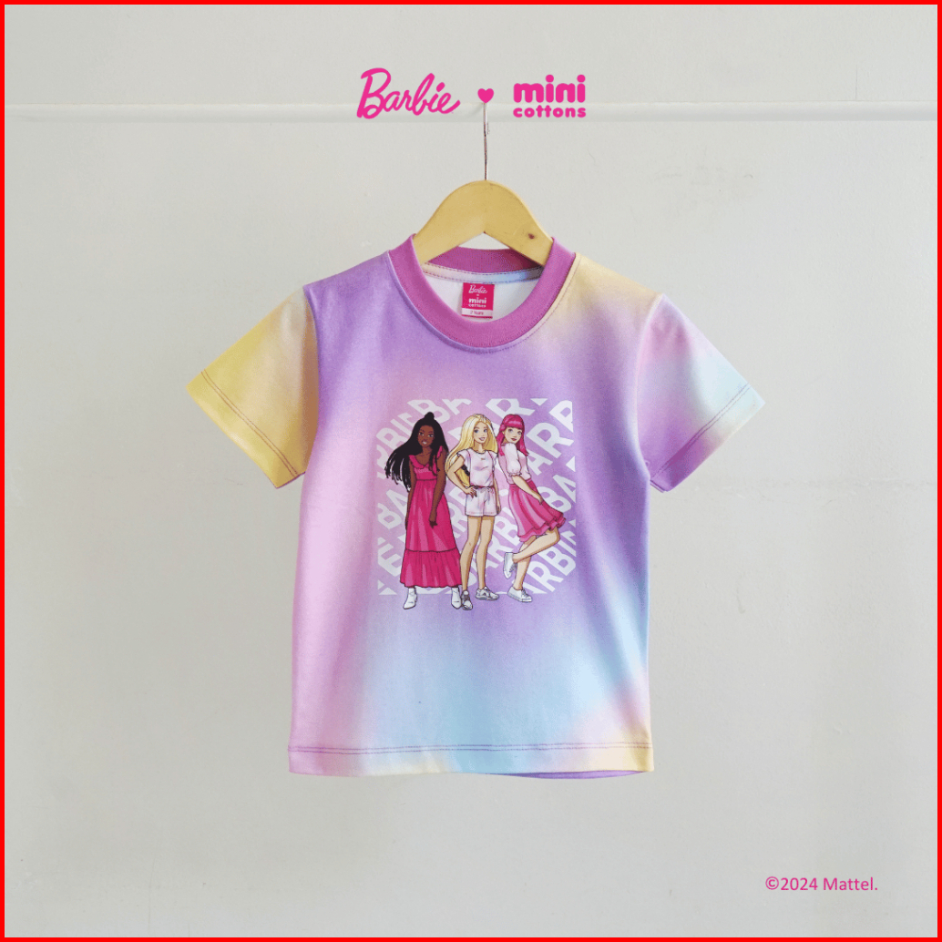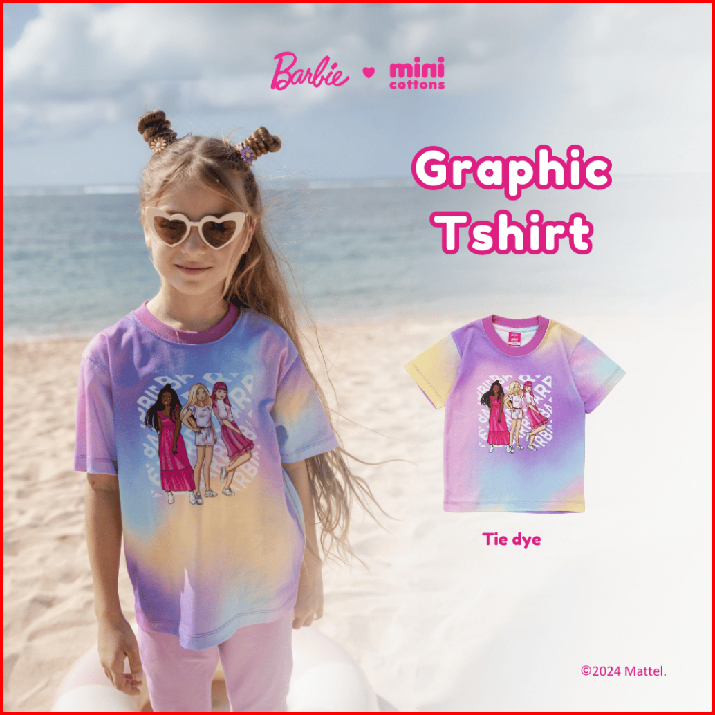 Barbie X Minicottons Graphic Fullprint Tie Dye Tshirt Kaos Grafis Baju Anak Perempuan 2-12 Tahun