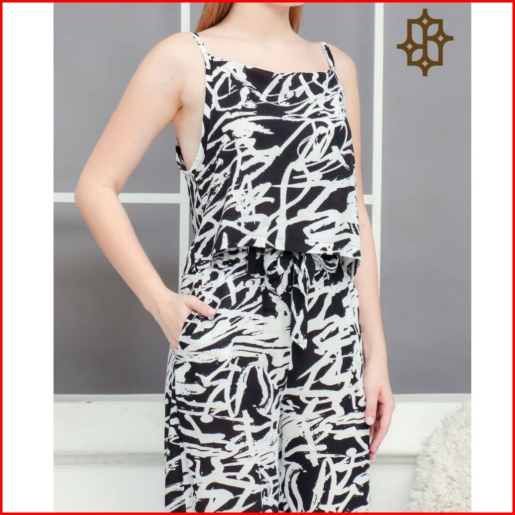 Saazz Piyama Abstrak Baju Tidur Wanita Oblong Kekinian Croptop