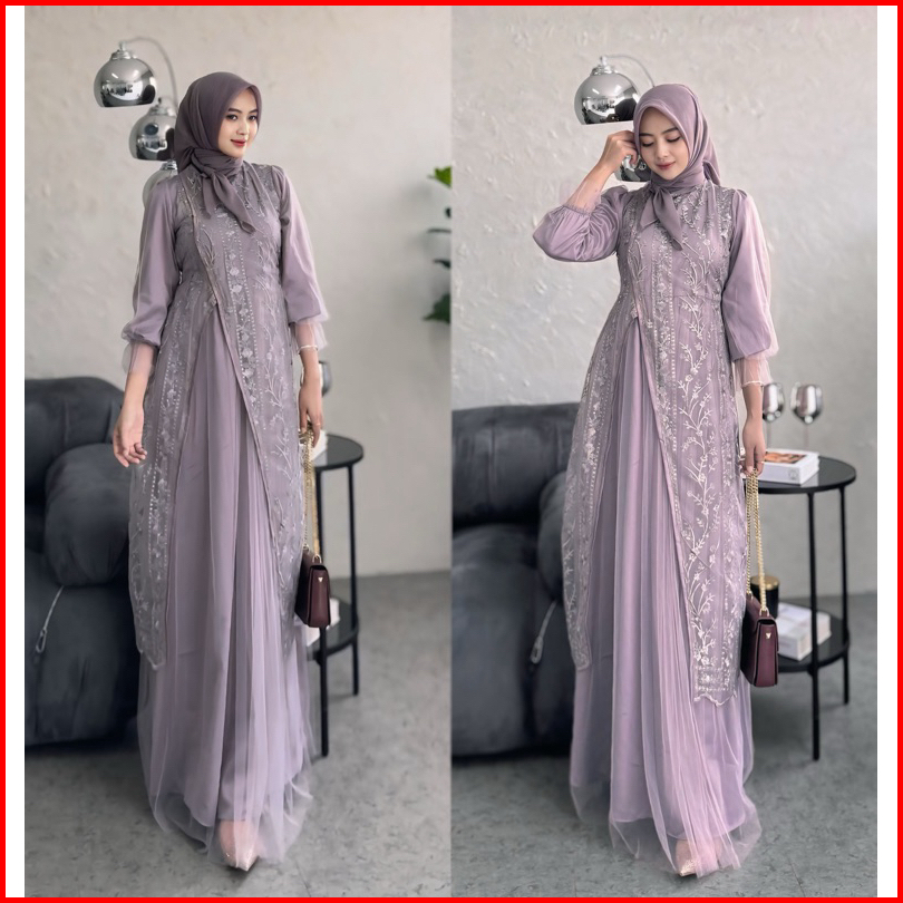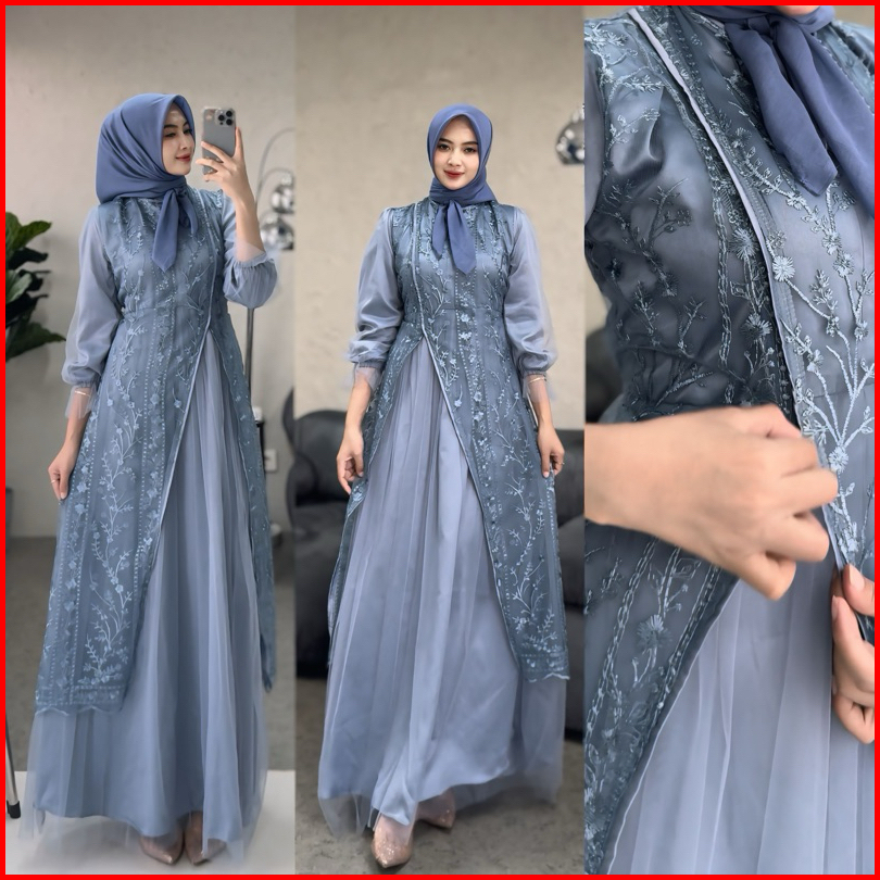 Cuci Gudang Kamari Dress Chemical Emboss Soft Tulle Premium Busui Gamis Brokat Kondangan Elegan Kekinian