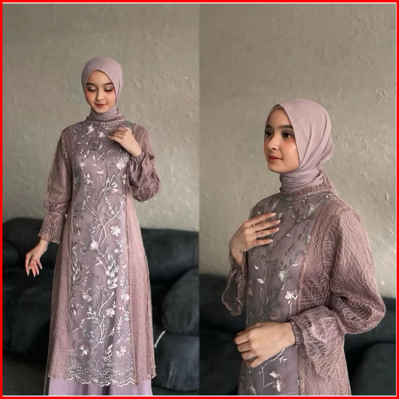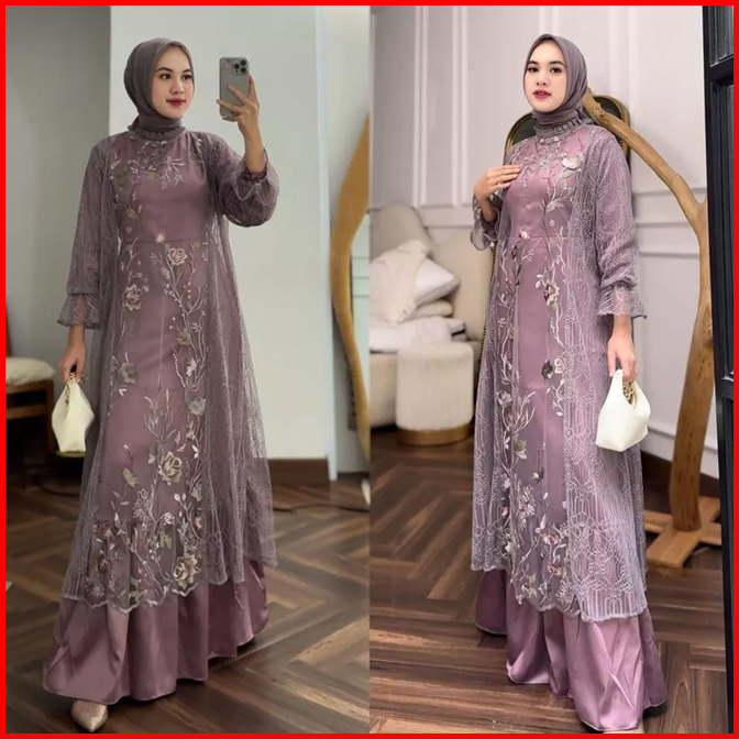 Lebaran Series Gamis Brokat Wanita Waisya Dress Brukat Cantili Gardenia Baju Pesta Kondangan
