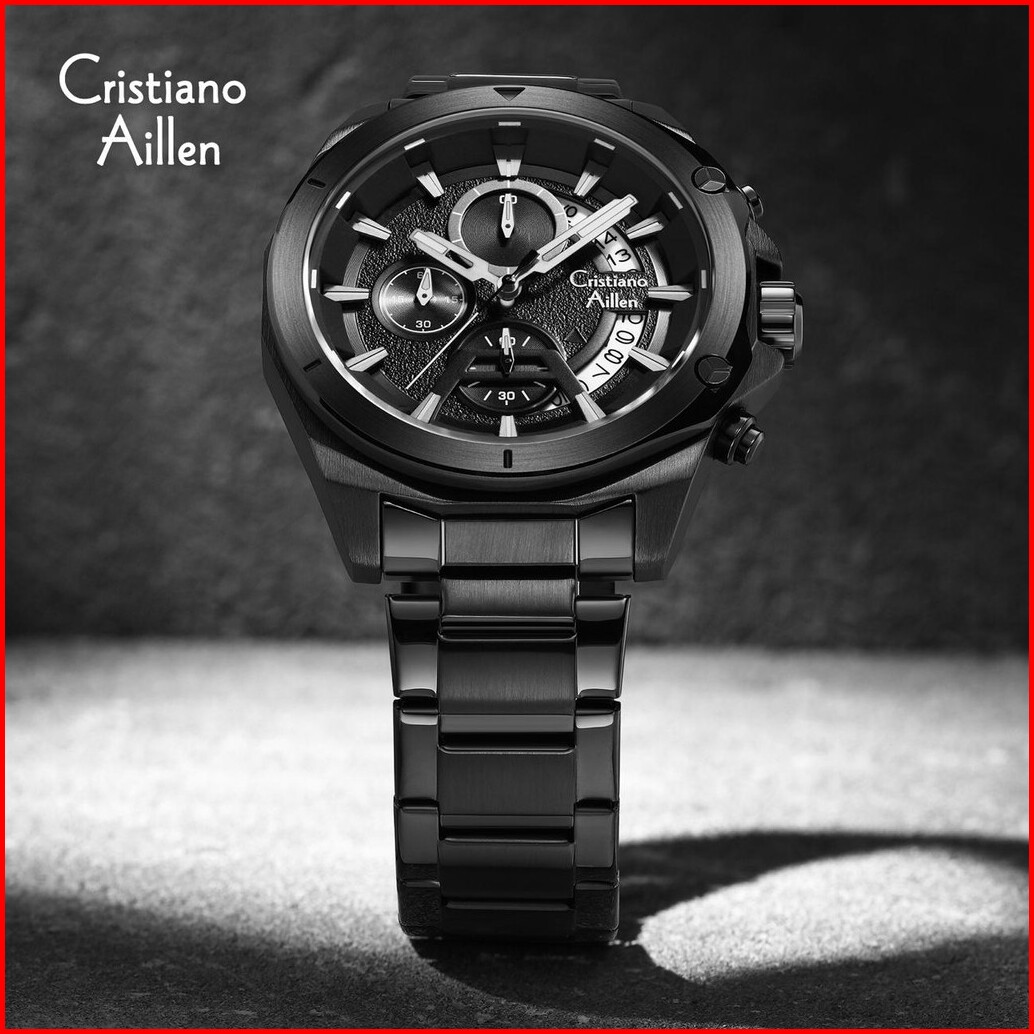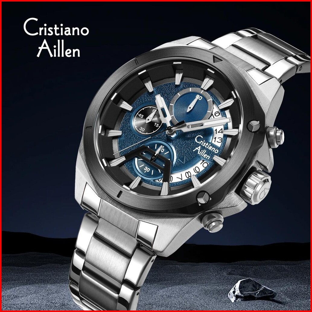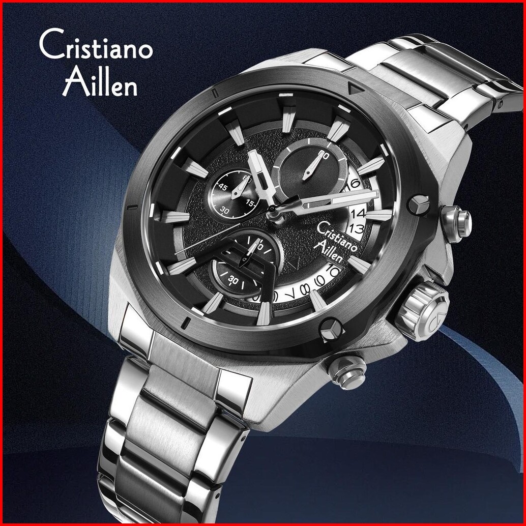 Cristiano Aillen Jam Tangan Pria Analog 8896 Rantai Stainless Steel Chronograph Kaca Sapphire Water Resistant 3 Atm