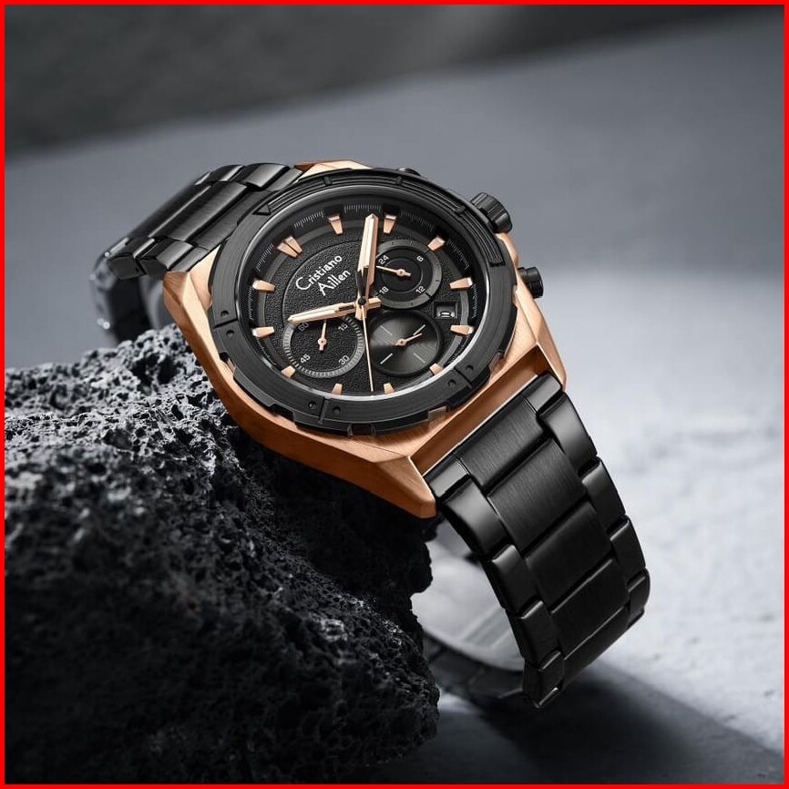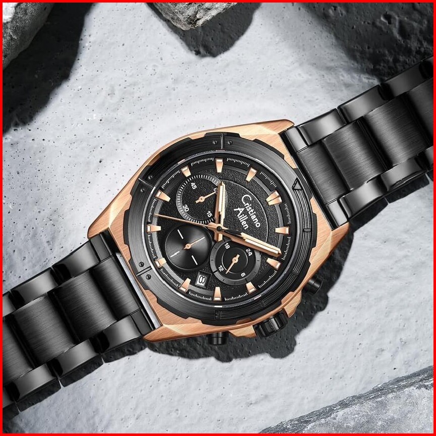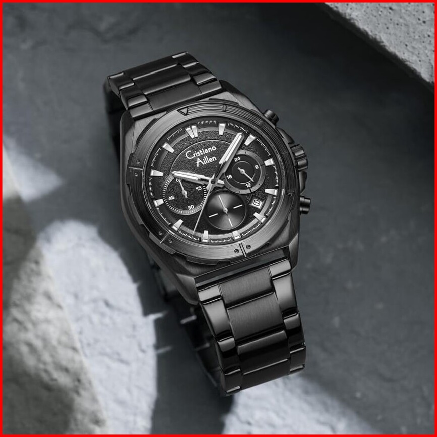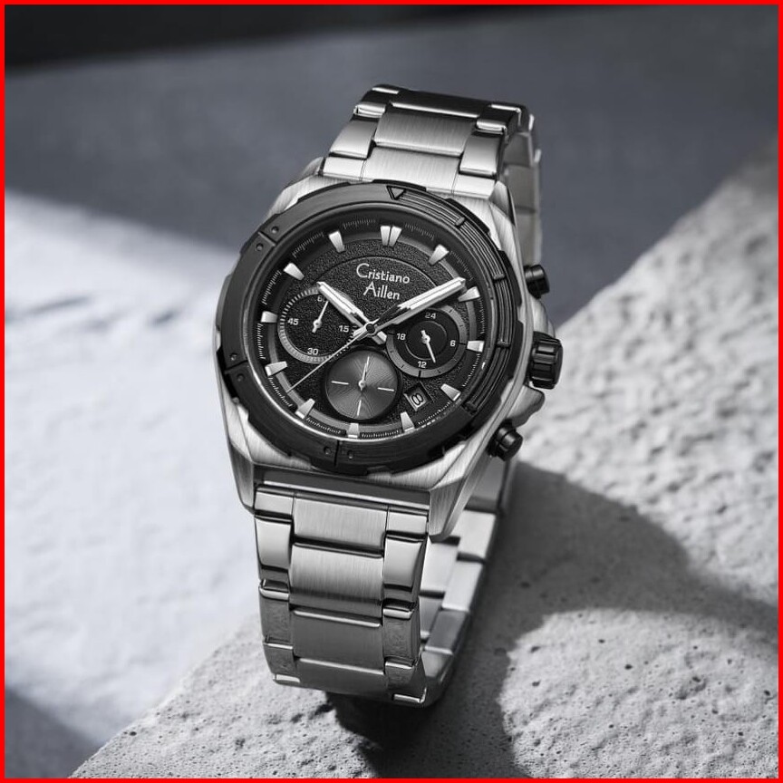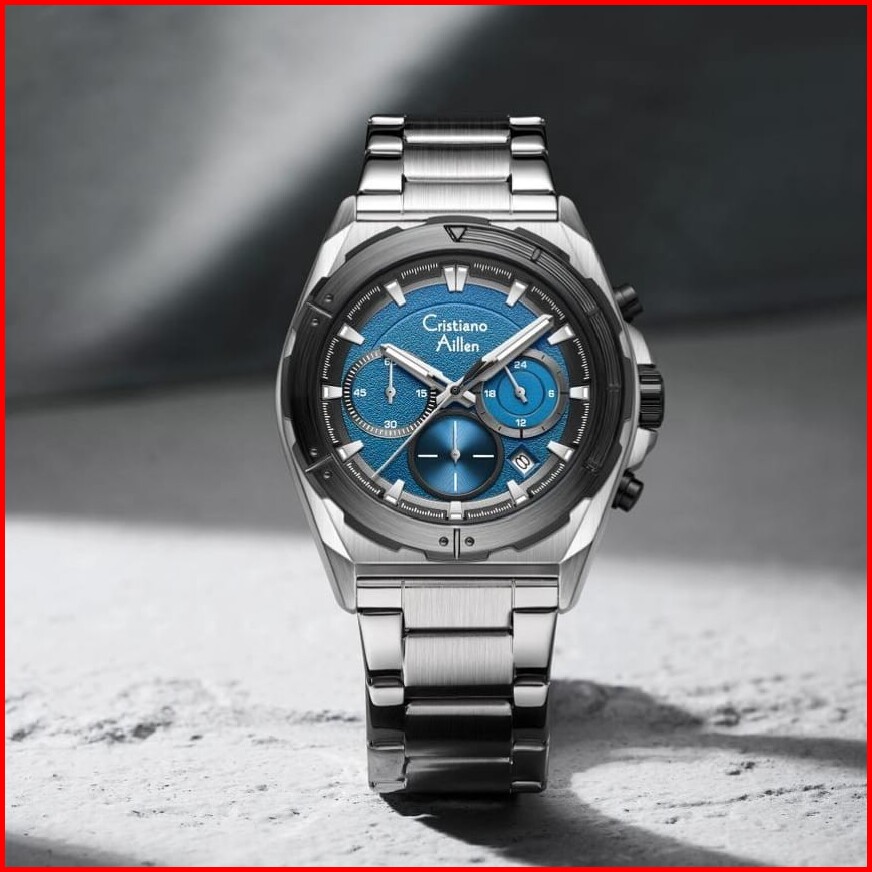 Cristiano Aillen Jam Tangan Pria Analog 8901 Rantai Stainless Steel Chronograph Kaca Sapphire Water Resistant 3 Atm