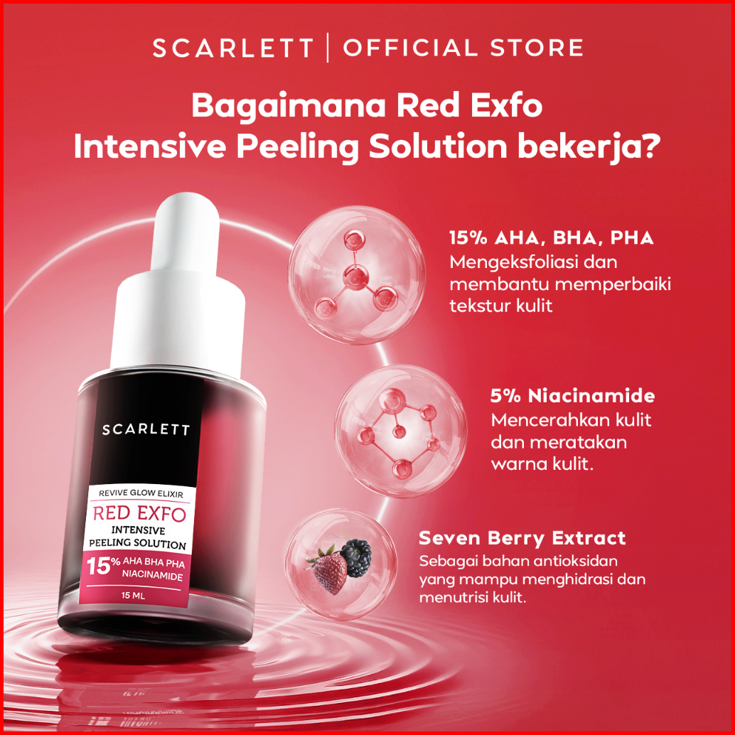 Scarlett Whitening Bundling Revive Glow Elixir Red Exfo Intensive Peeling Solution Ultra Light Daily Sunscreen 50ml