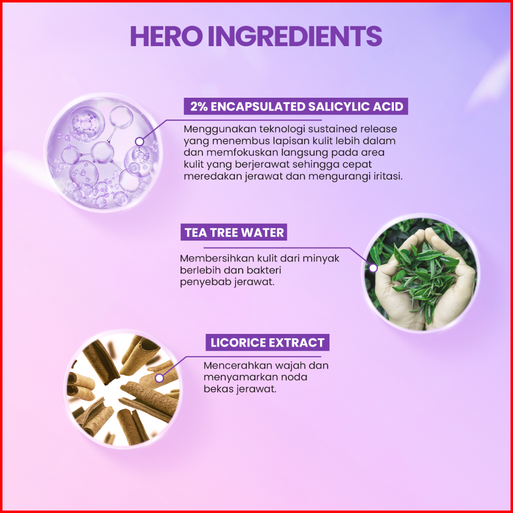 Scarlett Bundle Acne Solution 2 Salicylic Acid - Acne Facial Wash Acne Serum Menyembuhkan Jerawat Mencegah Jerawat Mengh