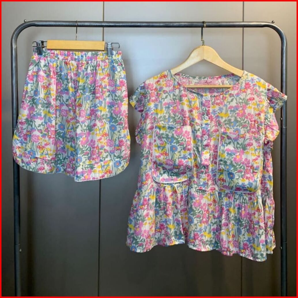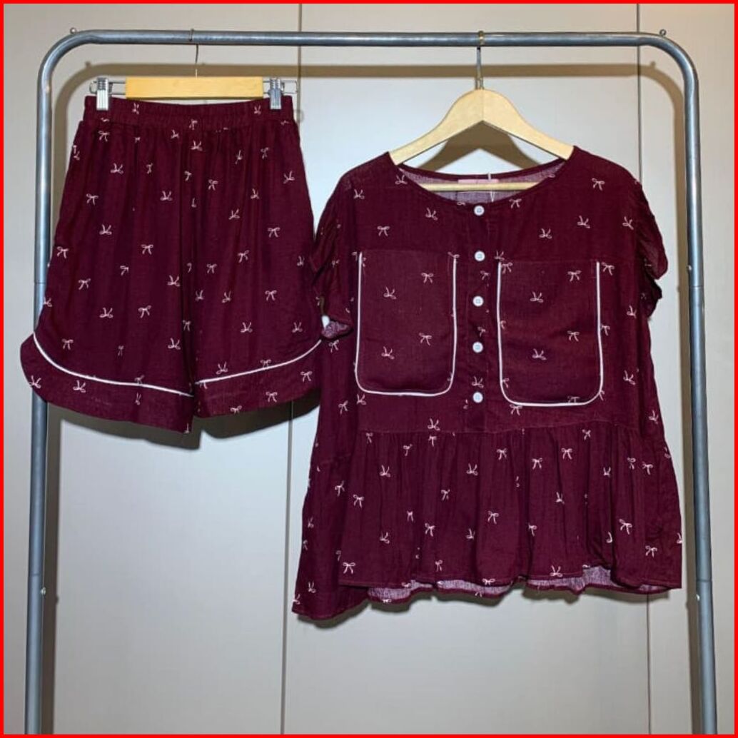 Aurae - Dhelisa Set Baju Tidur Wanita Floral Celana Pendek Kancing Depan