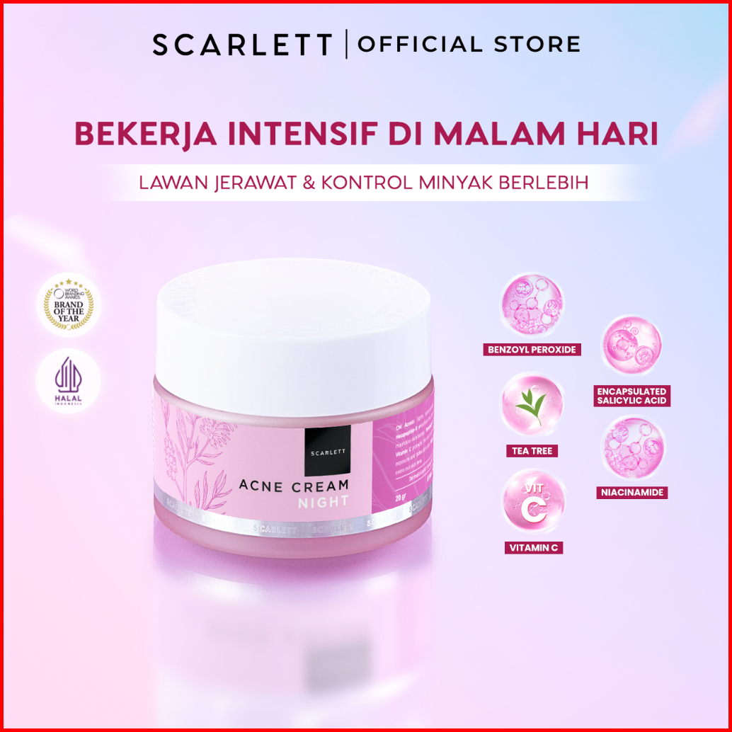 Scarlett Whitening Acne Night Cream - Krim Malam Penghilang Perawatan Jerawat Ampuh Atasi Hingga Bekasnya With Double Ac