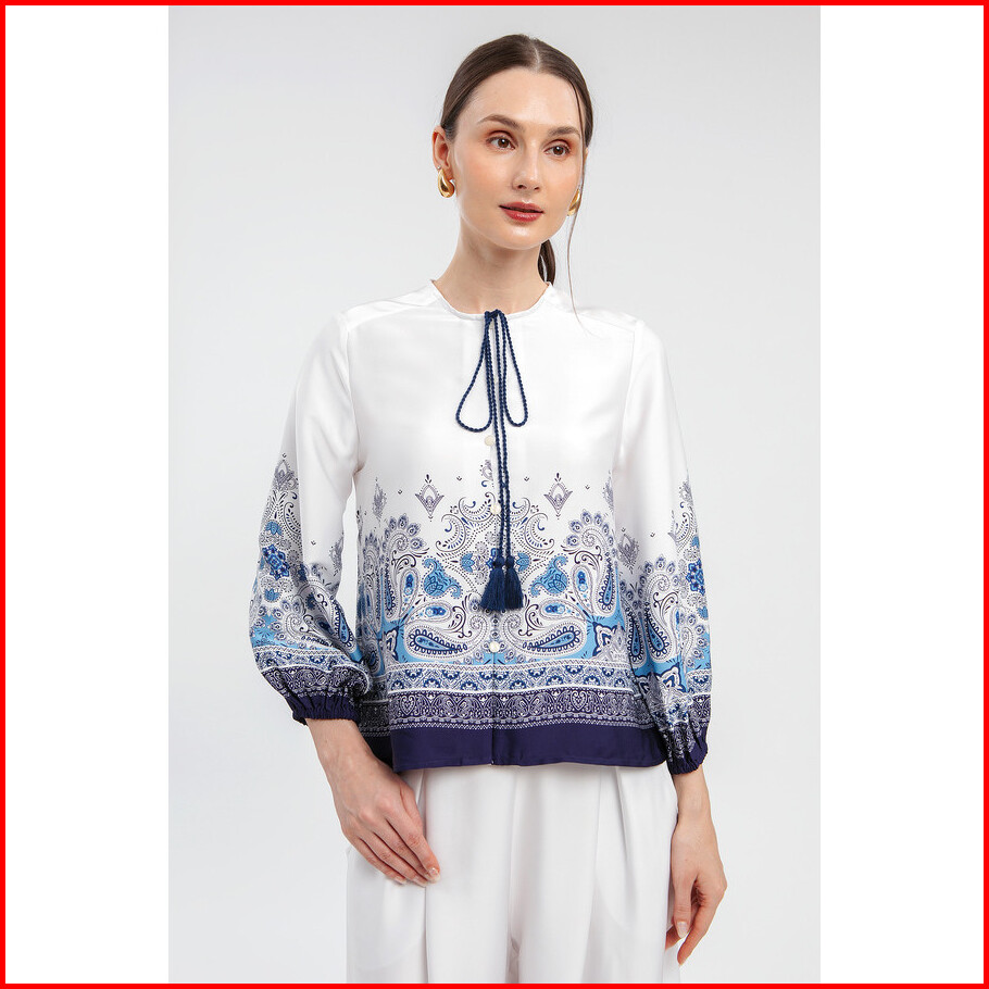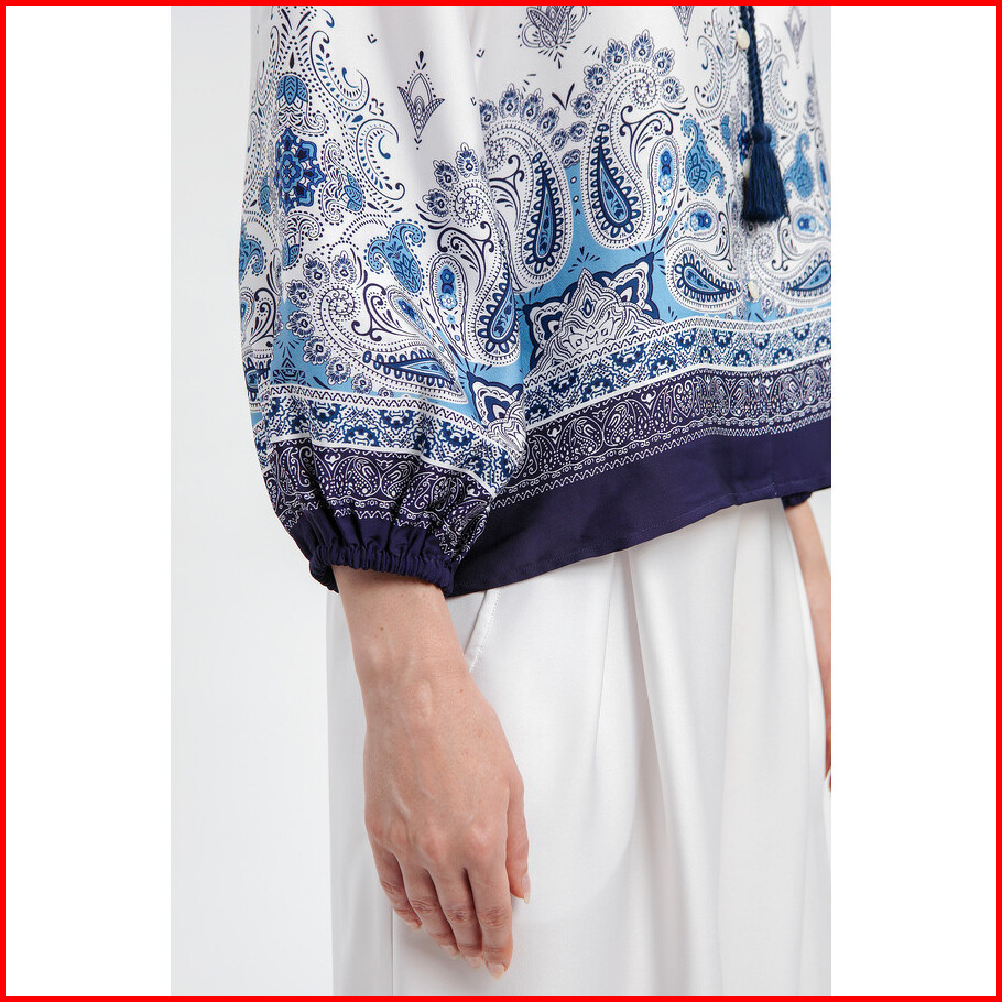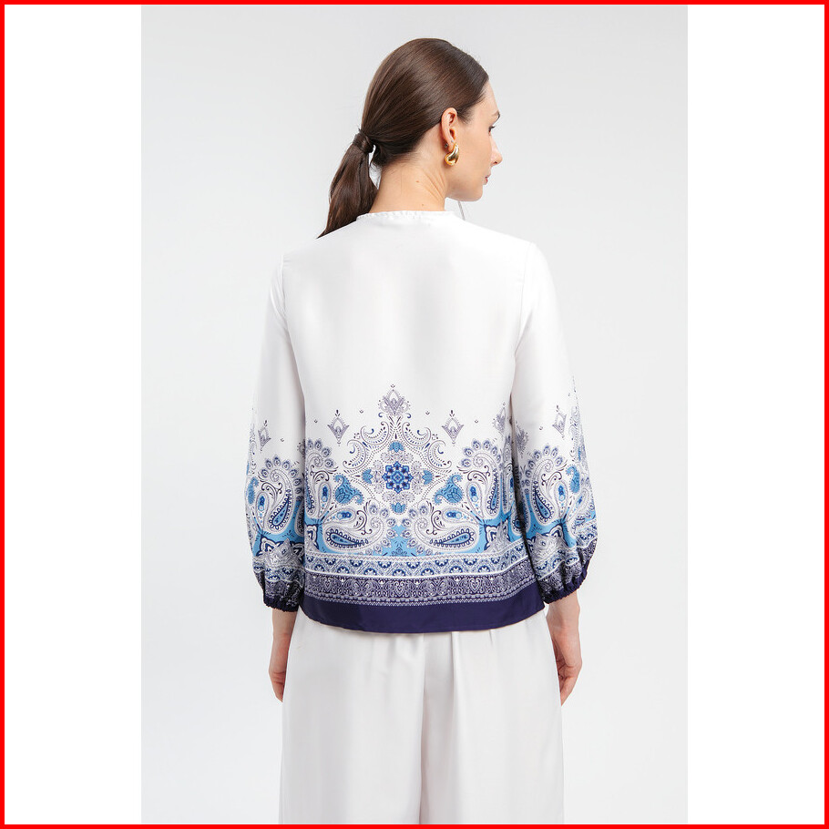 Minimal - Rysha - Blus Wanita Motif Paisley - White