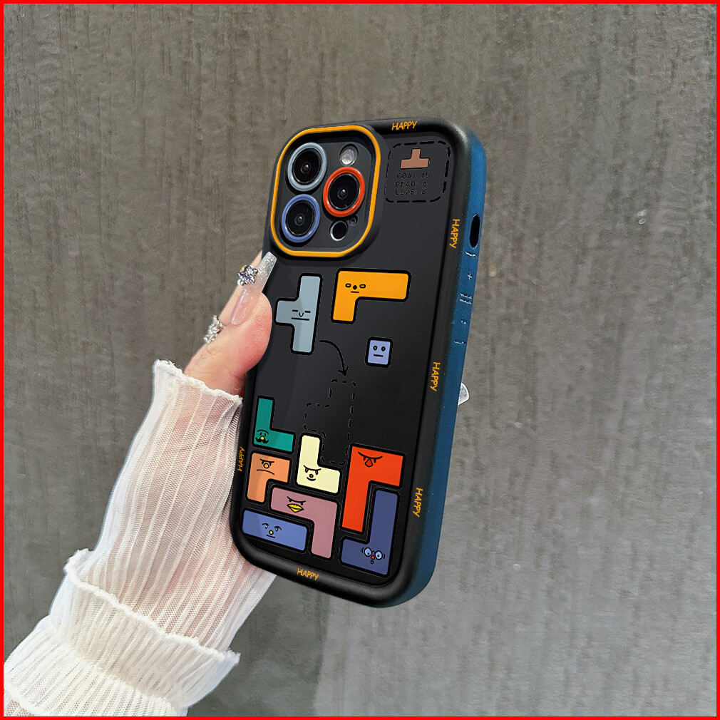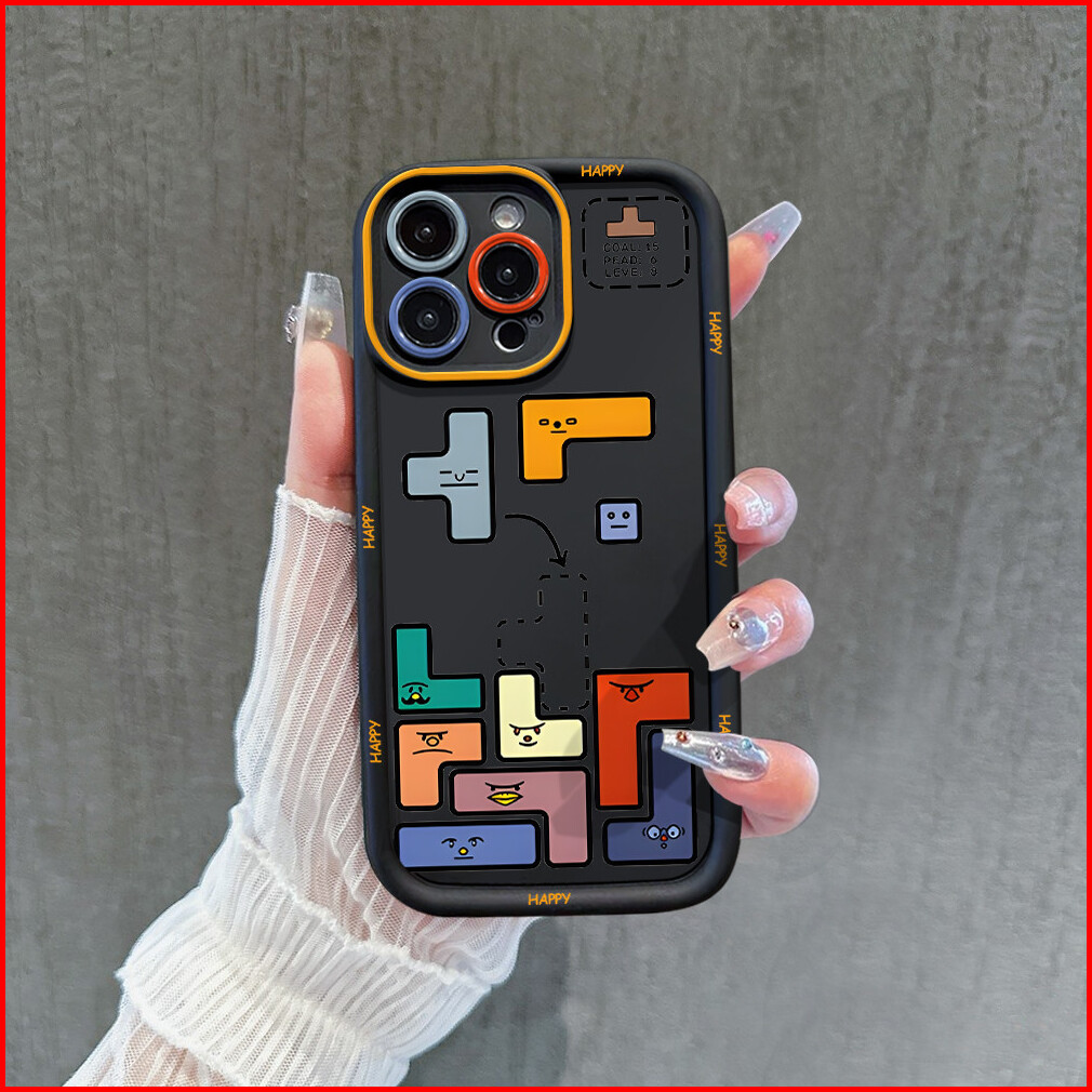 Case Untuk Iphone 13 11 15 Pro Xs Xr 15 14 Plus 11 12 13 14 Pro Max 7 8 Xs Max Casing Ponsel Anti Jatuh Tetris Dengan La