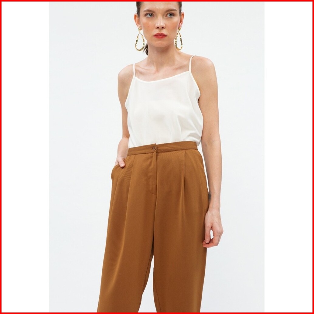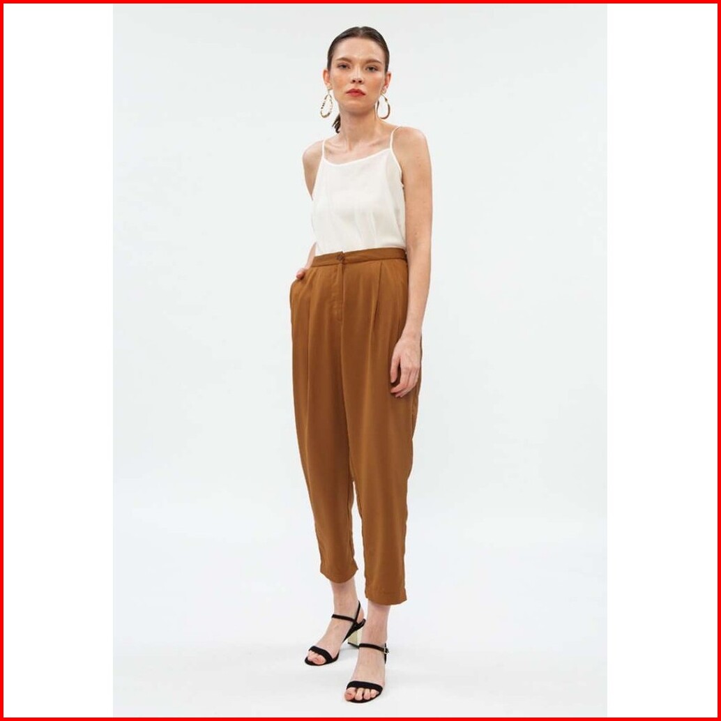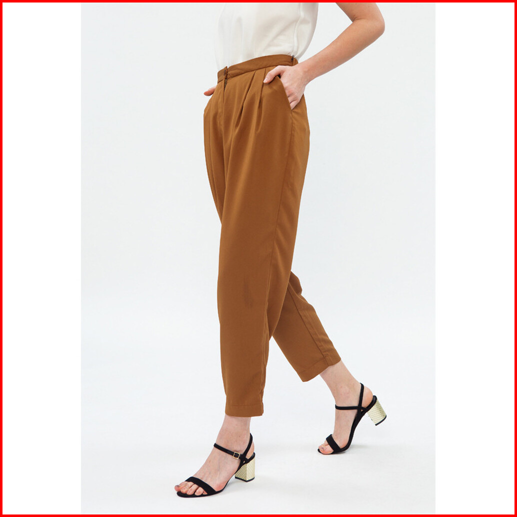 Minimal Basic Pleats Trouser Wanita Brown