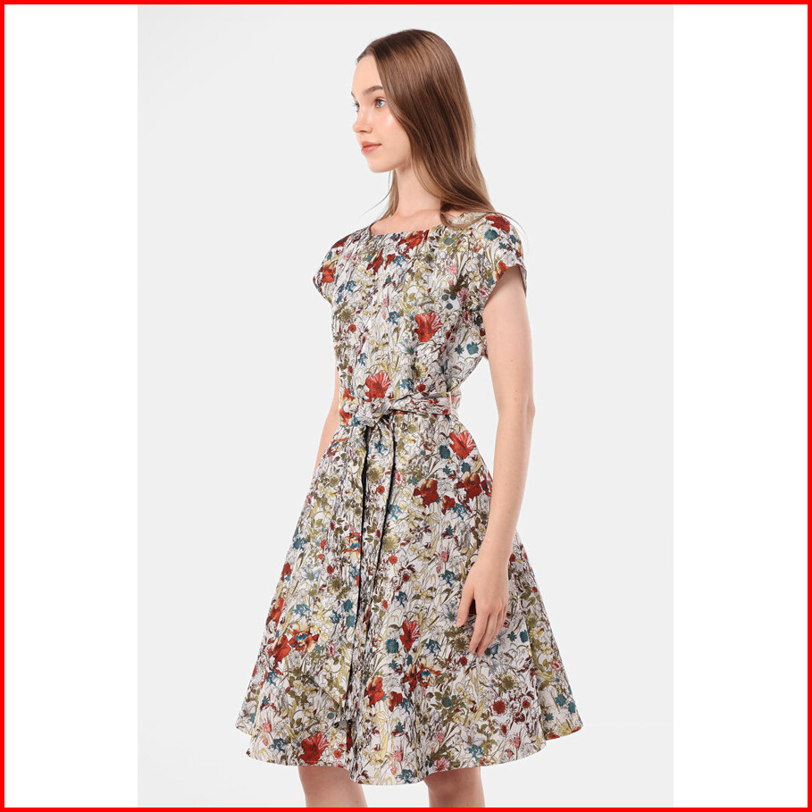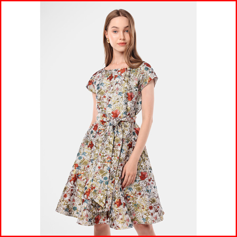 Minimal - Agnesia - Dress Jacquard Wanita Motif Bunga - Off White