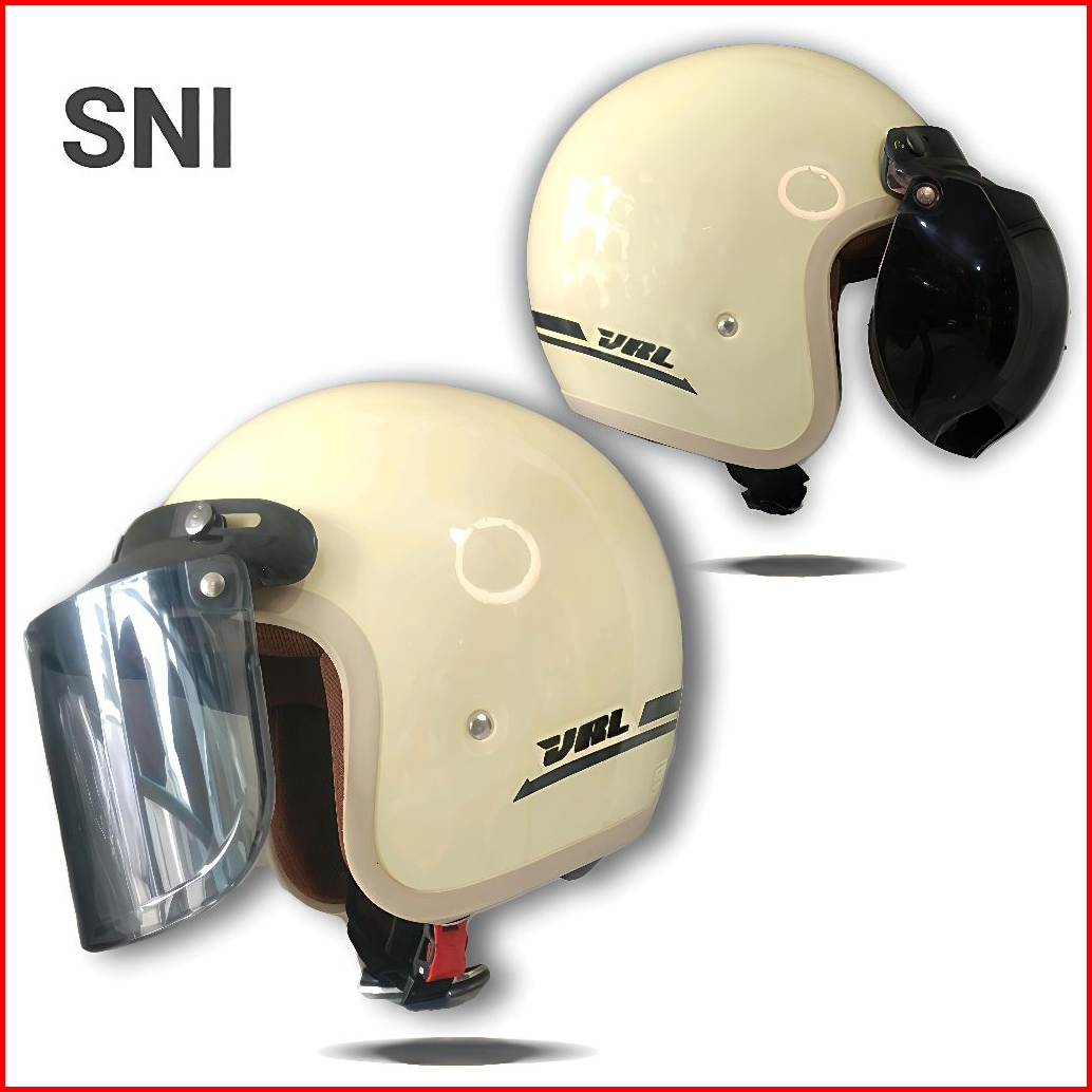 Helm Bogo Dewasa Wanita Kaca Bening List Krem