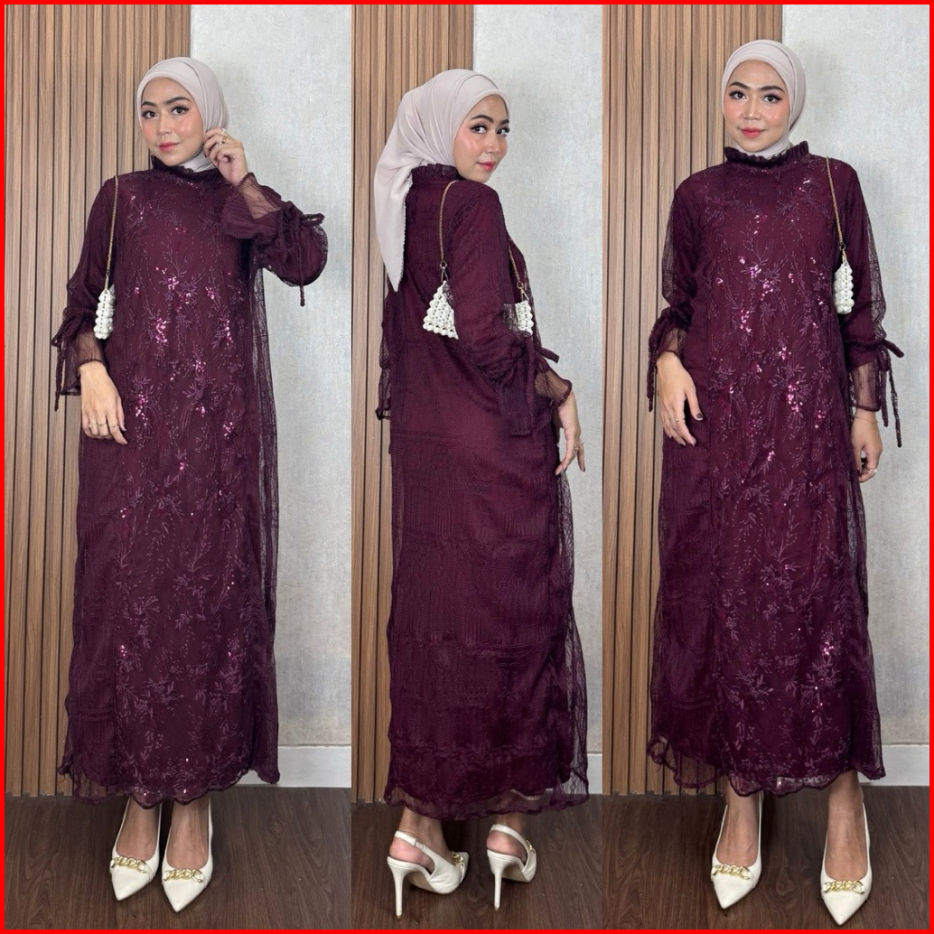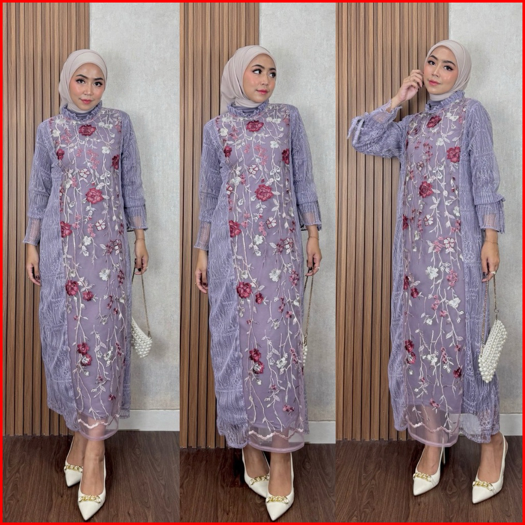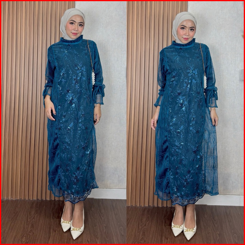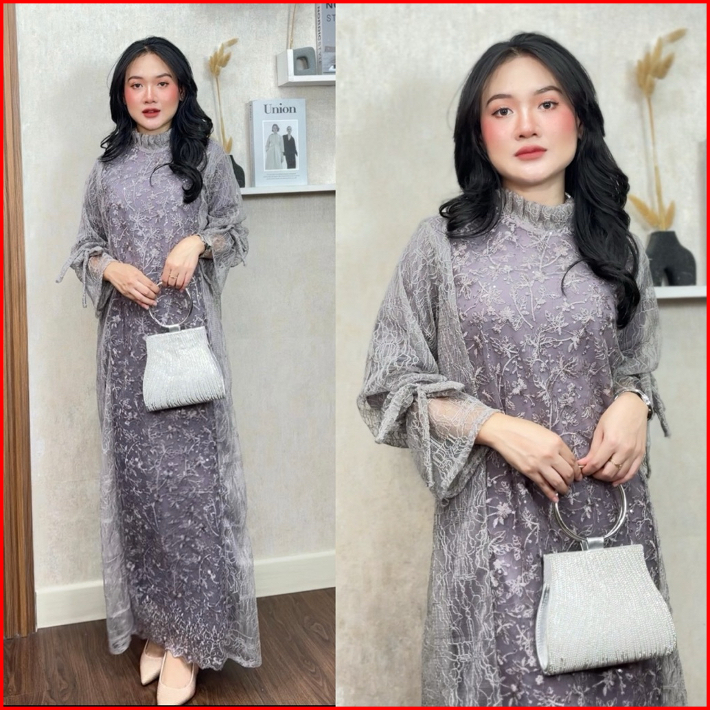 Mina Dress One Set Outer Brukat Plus Inner Baju Kondangan Outfit Pesta Lamaran Wisuda Wanita Muslimah Setelan Mewah