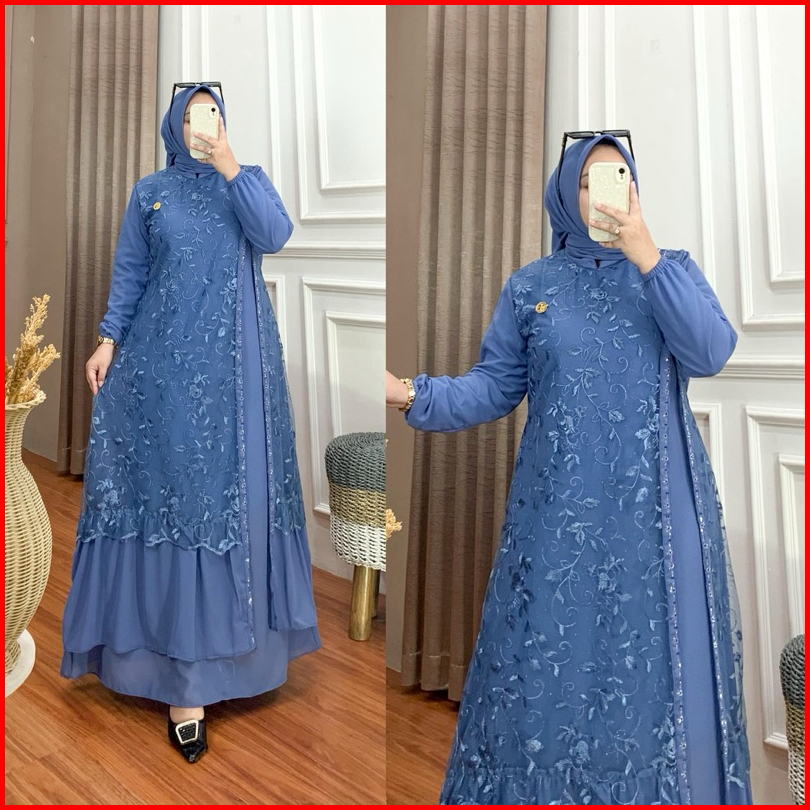 Kamila Gamis Putih Swarosky Brukat Set Hijab Ceruty Kondangan Rempel Pesta