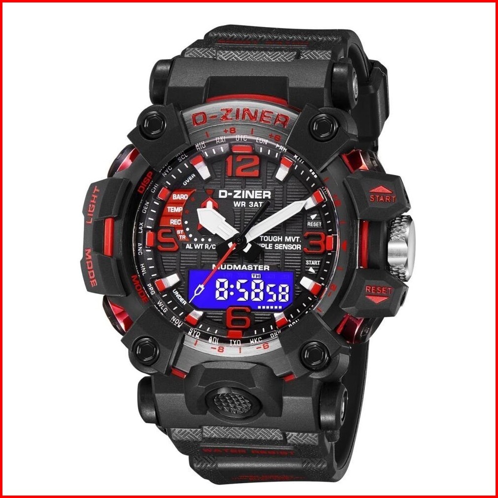 Original 100 Jam Tangan Pria Dziner 8316 Rubber Double Time Water Resistant 3 Atm Promo