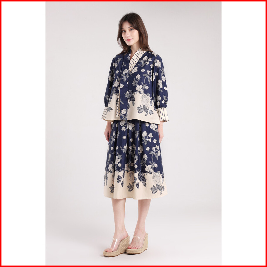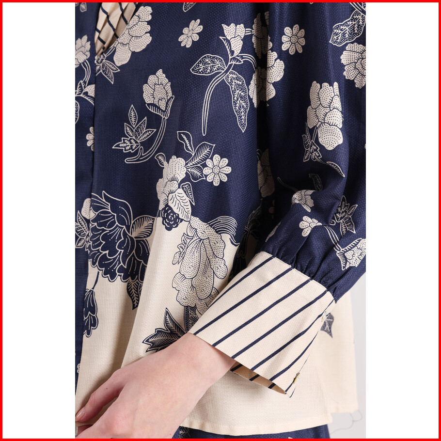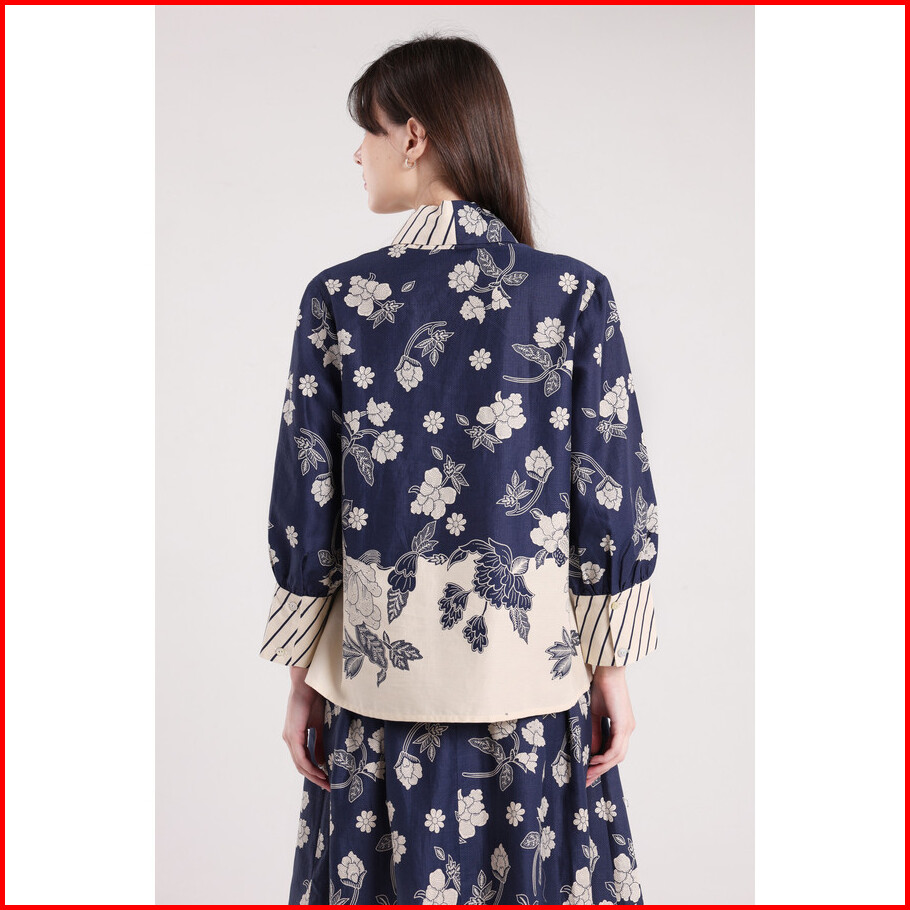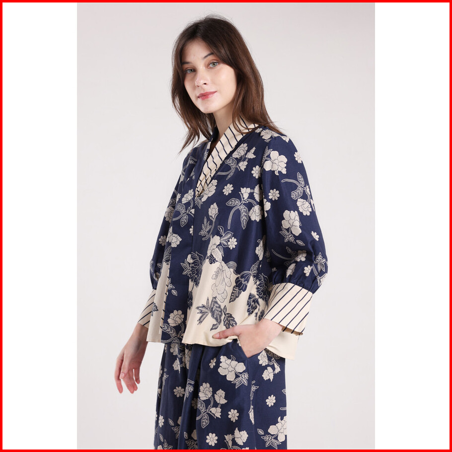 Minimal - Arsyana - Blus Katun Motif Bunga - Dark Navy