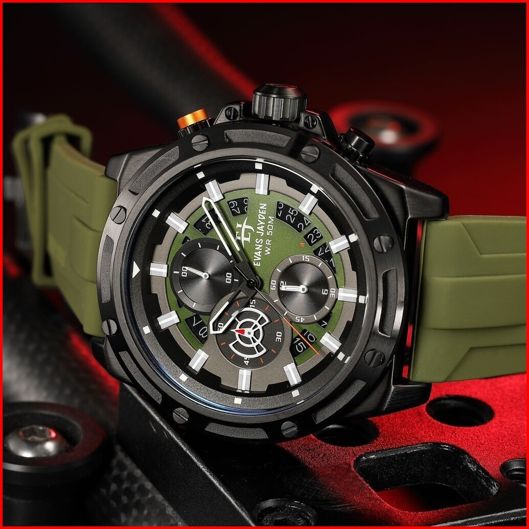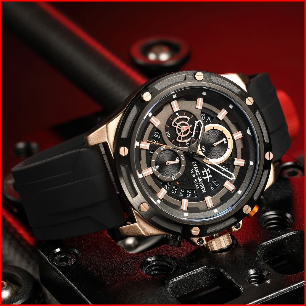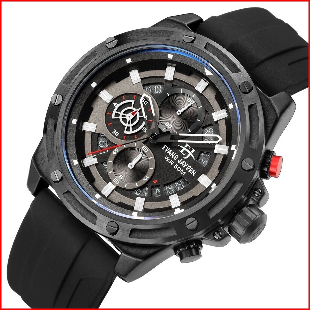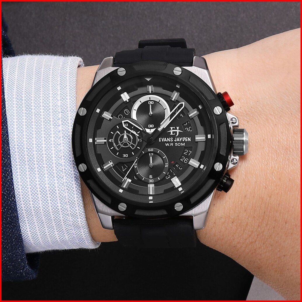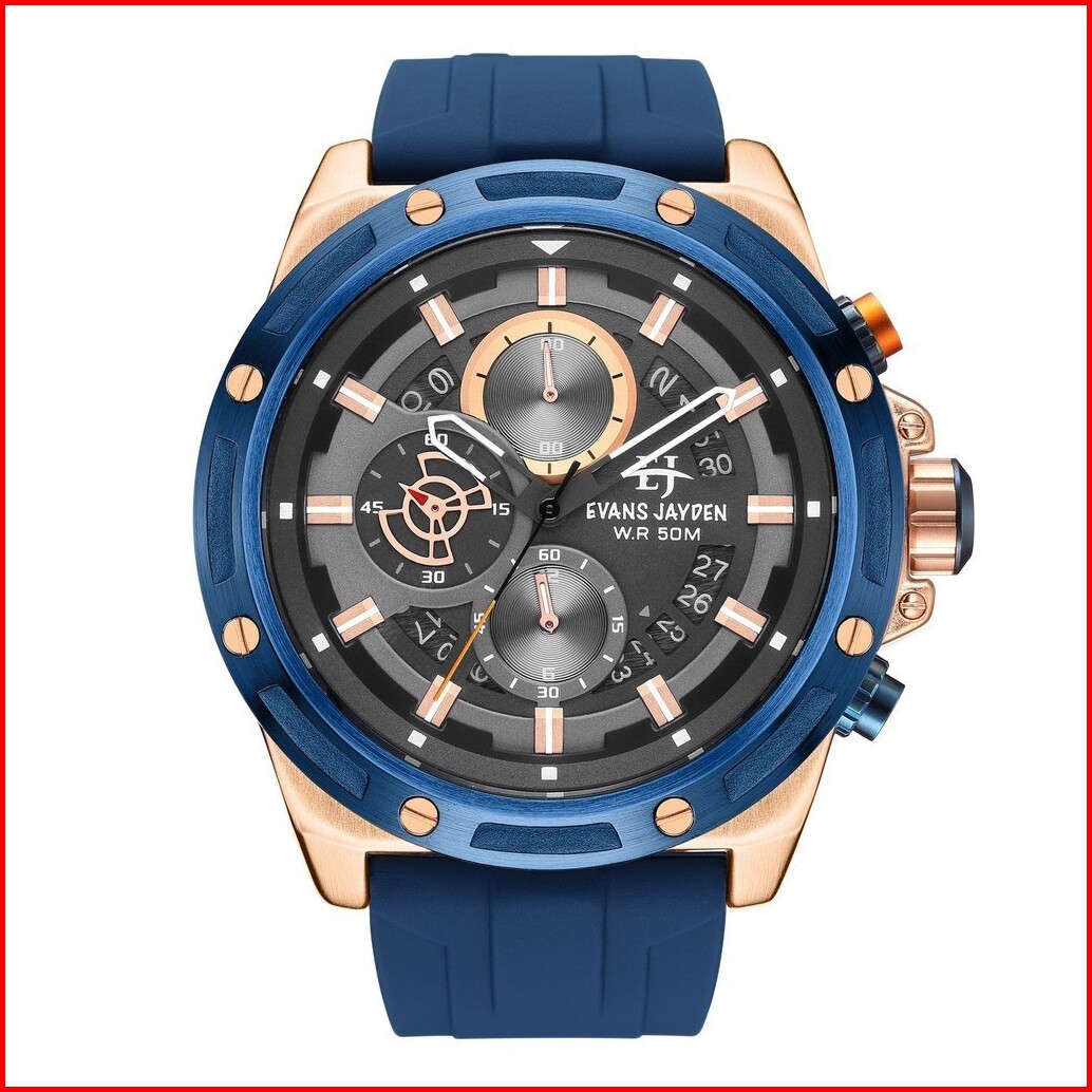 Diskon Jam Tangan Evans Jayden Jam Tangan Pria 9597 Rubber Kaca Sapphire Chrono 5 Atm