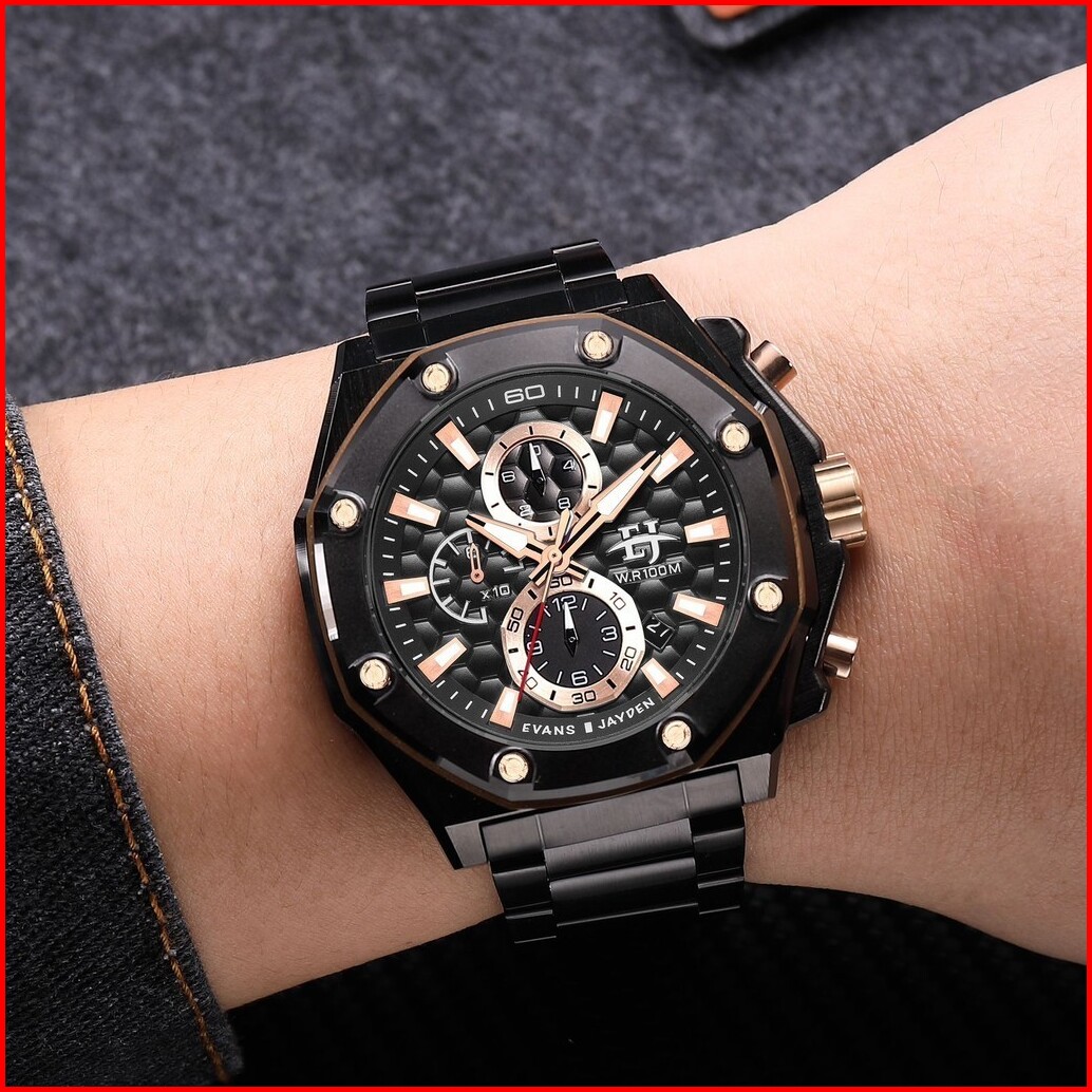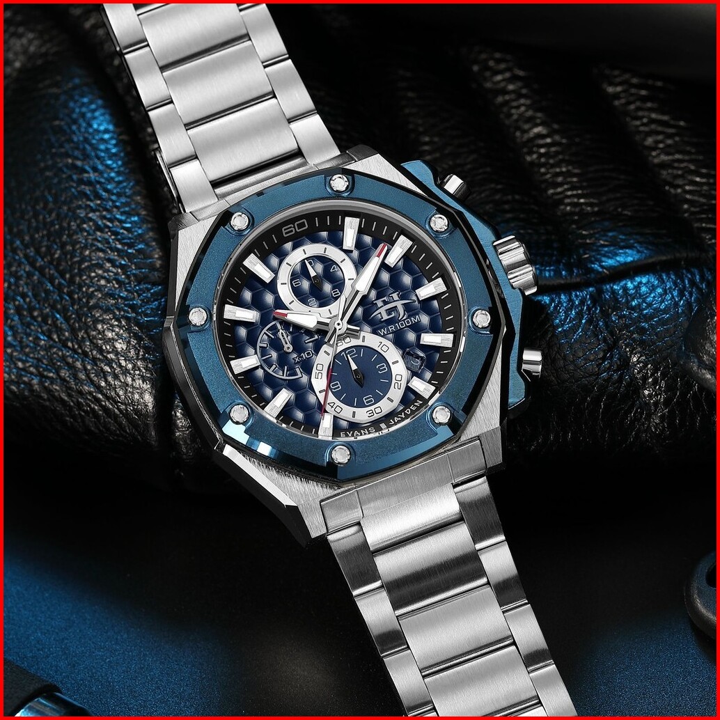Diskon Evans Jayden Jam Tangan Pria 9586 Rantai Stainless Steel Chrono Kaca Safir 10atm