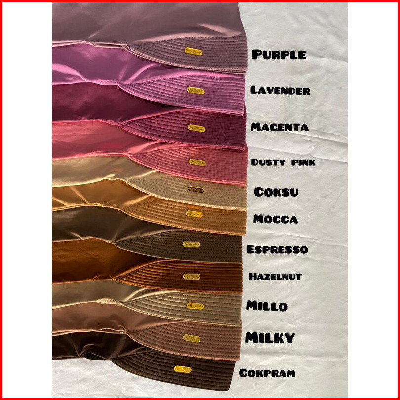 Denim, Lemon, Putih, Dusty pink, Merah cabai, Salem, Espresso, Toska, Silver, Army, Wardah, Milky, Kunyit, Terakota, Sage, Olive, Turkis, Lavender, Fanta, Jotol, Hitam, Birel, Navy, Maroon, Mocca, Coksu, HIJAB VOLY RANDOM, Avocado, Coklat tua, Matca, Hazelnut, Abutua