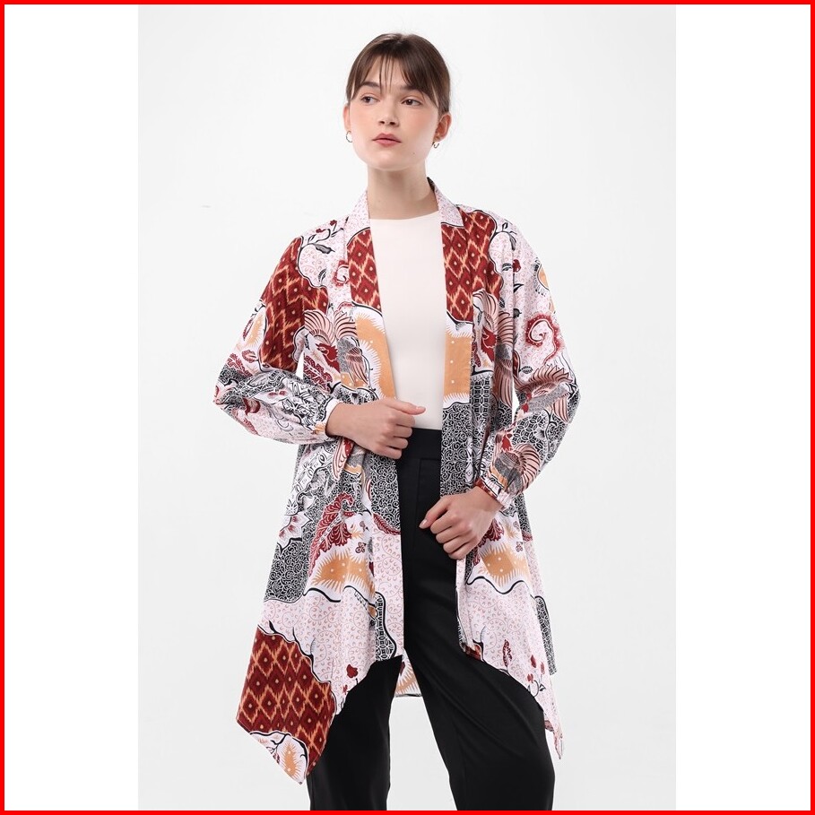 Minimal Gyandra Outerwear Wanita - Cardigan Motif Etnik - Model Asimetris - Warna Beige