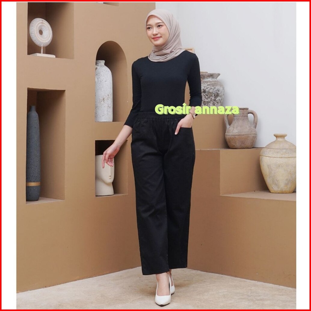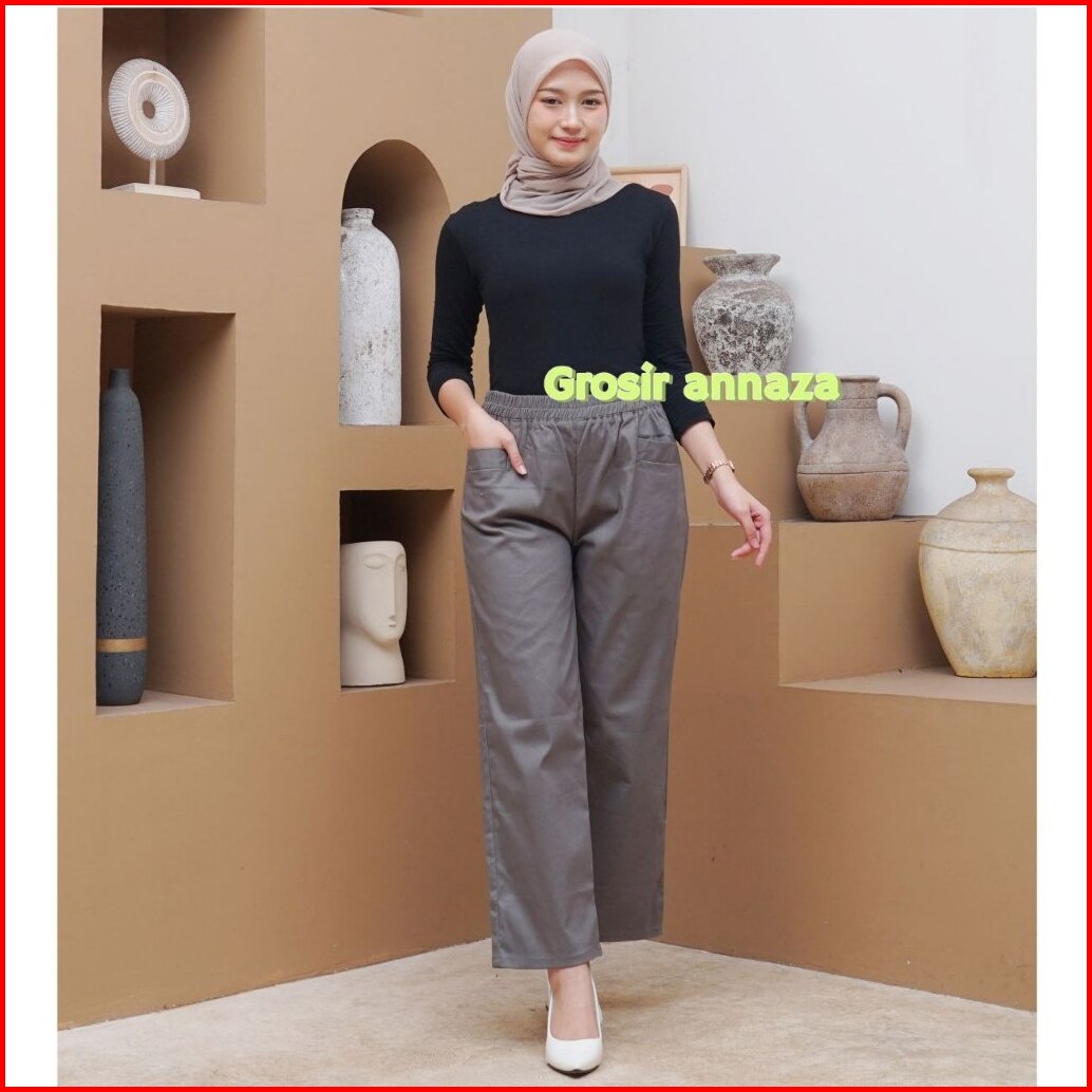 Terlariss Celana Kulot Korea Wanita Jumbo Bahan Melar Korean Long Pants Celana Korean Style Wanita Panjang
