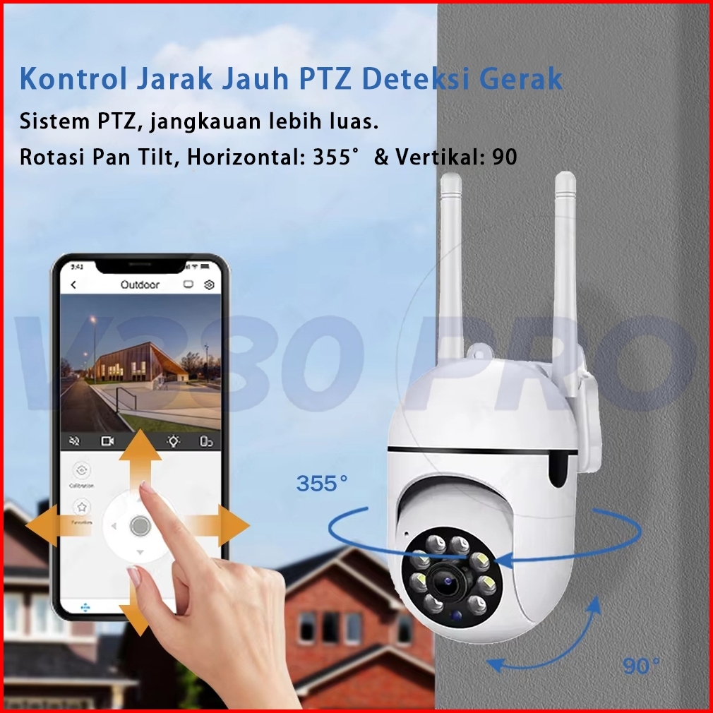 V380 Pro Kamera Cctv Penglihatan Malam Penuh Warna Outdoor Tahan Air Ip65 Deteksi Alarm Pintar