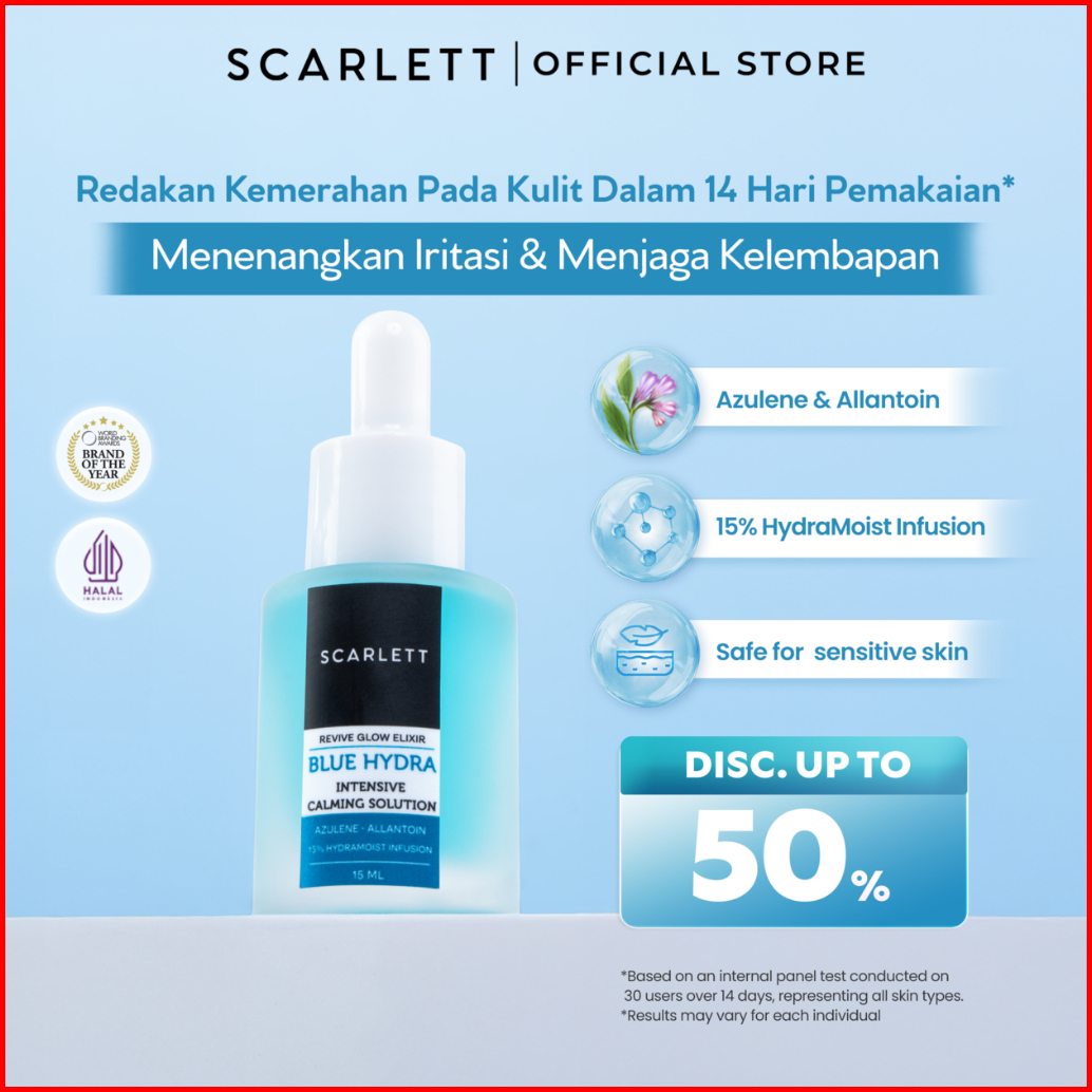 New Launch Scarlett Blue Hydra Intensive Calming Solution Dengan Azulene Allantoin Serum Wajah Untuk Menenangkan Menghid