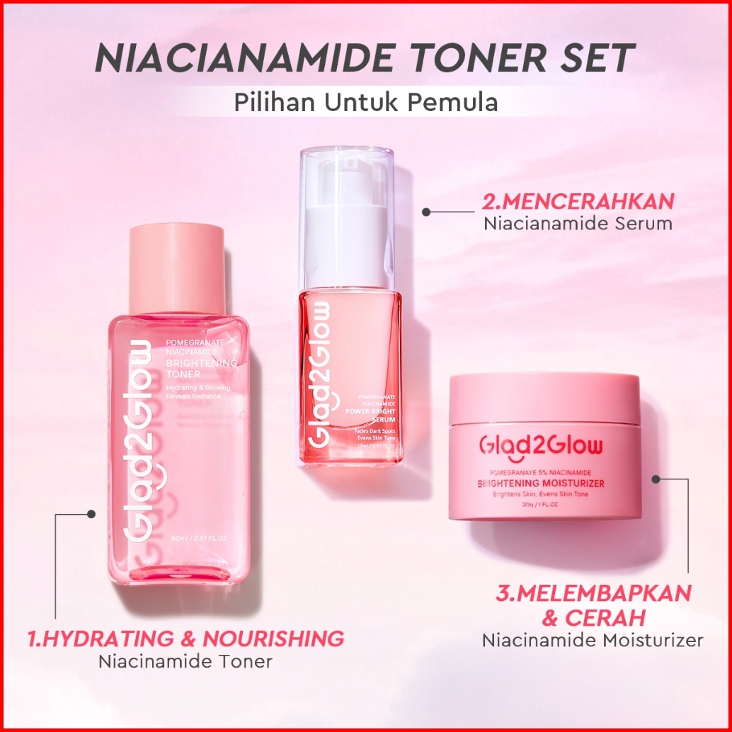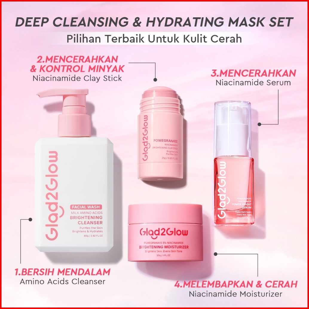 Cocok Untuk Pemula Glad2glow Cerah Glowing Bundle 4in1-brightening Moisturizer Serum Cleanser Toner Peeling Solution Ret