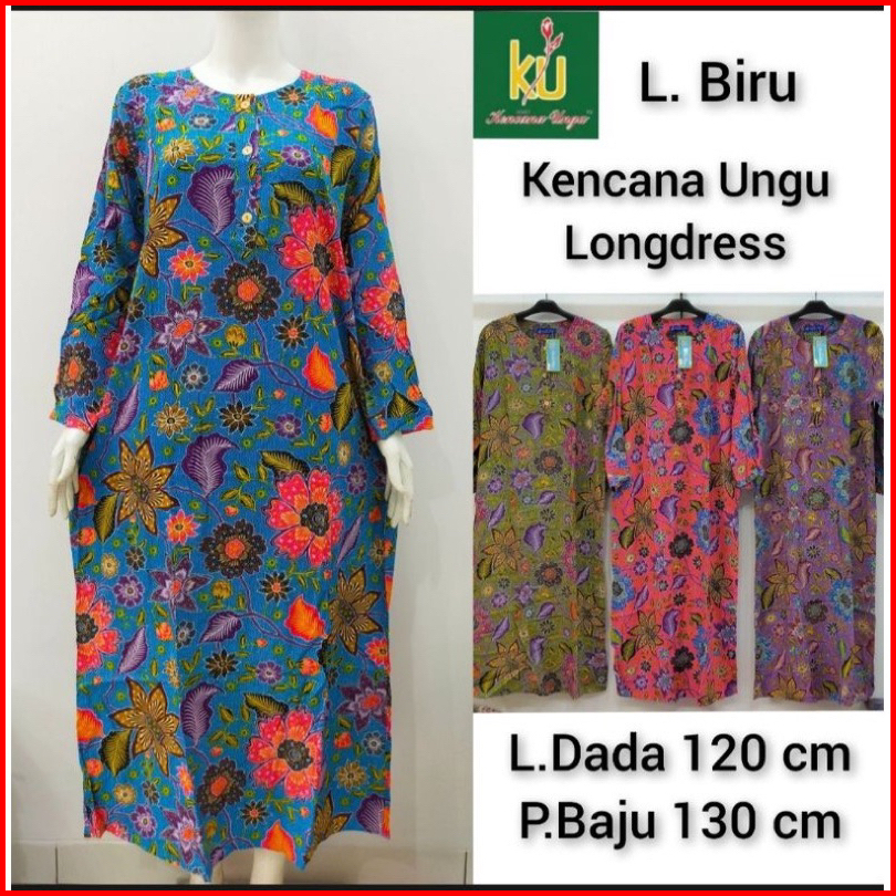 Longdress Lengan Panjang Motif Batik Terbaru Asli Kencana Ungu Label Biru Jumbo Ld.120 Cm Daster Panjang Semata Kaki Bus