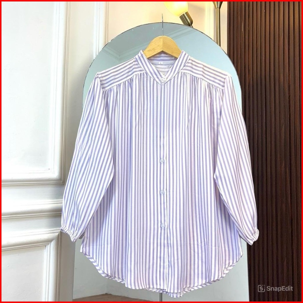 Azura Kemeja Salur Wanita Rayon Premium Atasan Korean Look Busui Frendly Terbaru