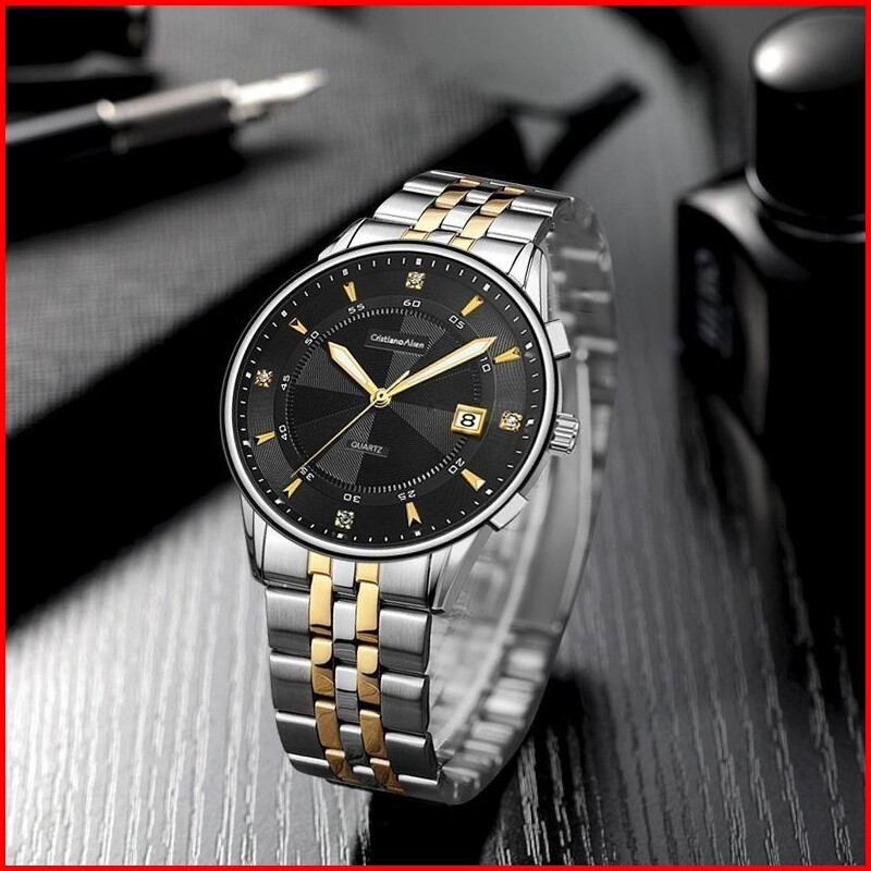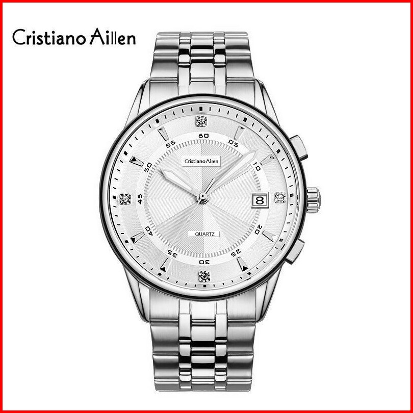 Cristiano Aillen Jam Tangan Pria 0848 Rantai Stainless Steel Tgl Aktif Water Resistant 3 Atm