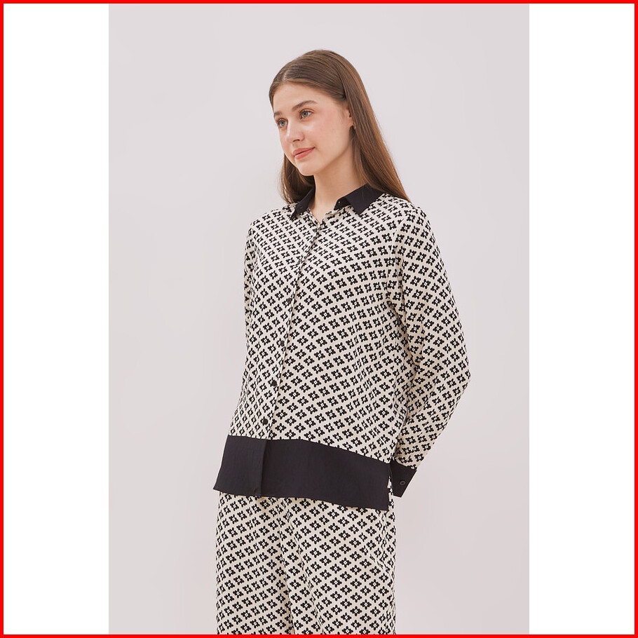 Minimal - Saviana - Geometric Printed Shirt Wanita - Black