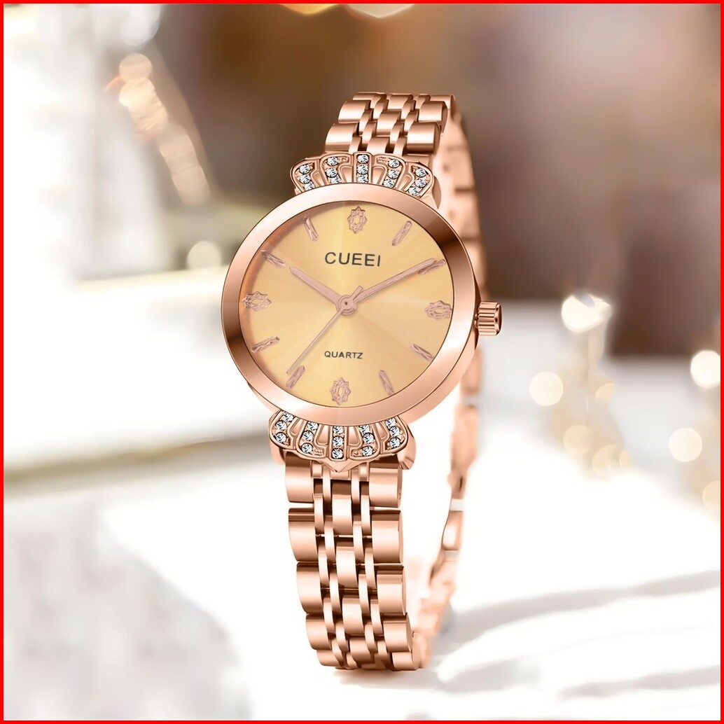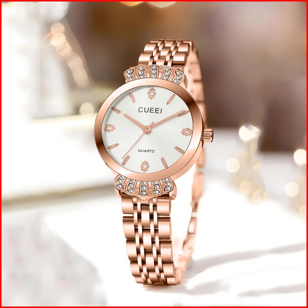 Cueei Jam Tangan Wanita Kuarsa 8049 Rantai Stainless Steel