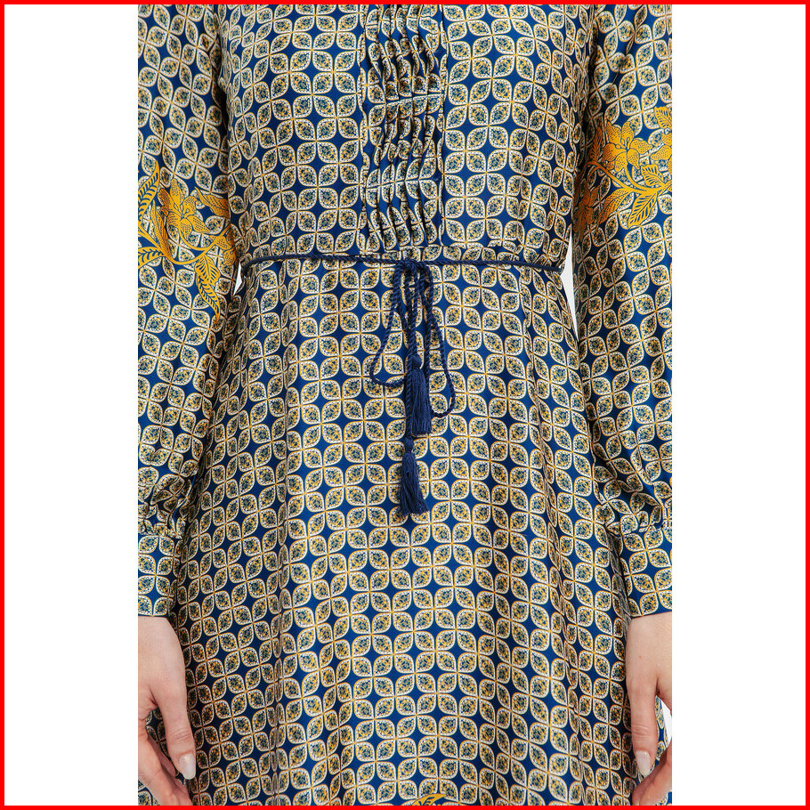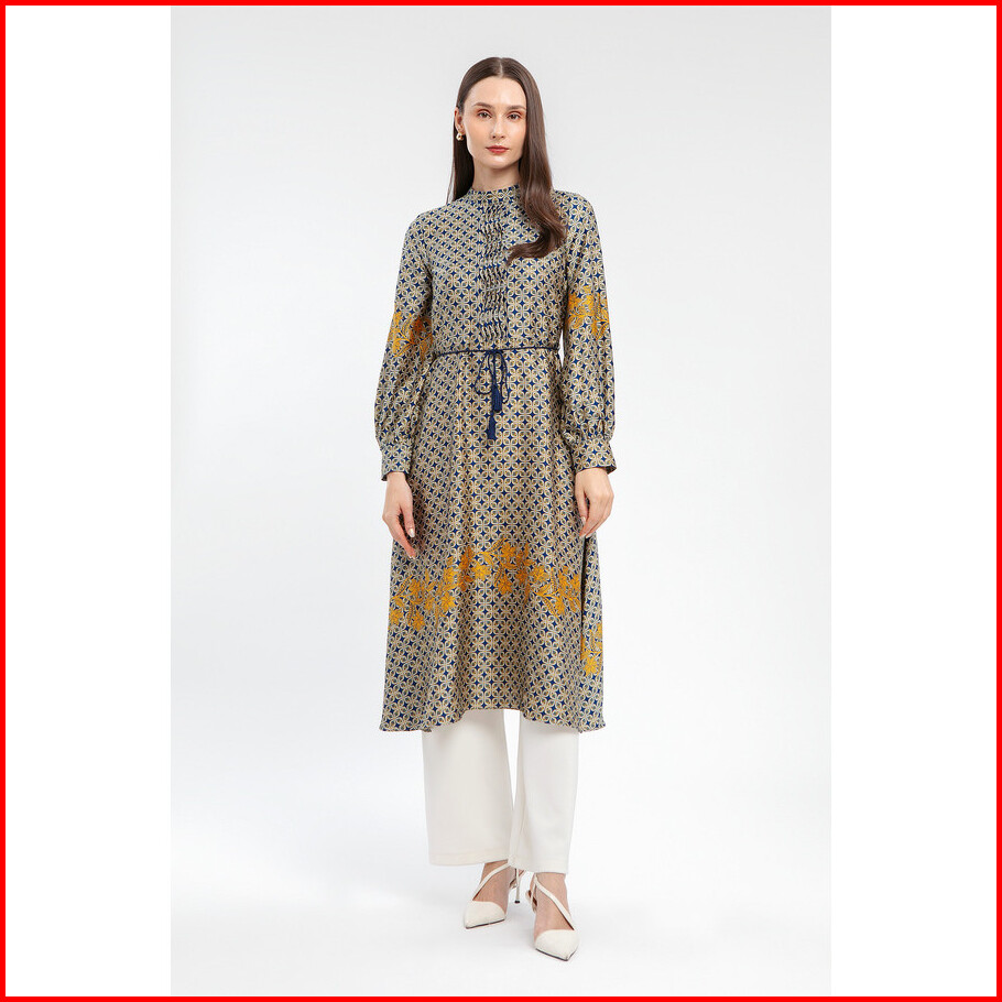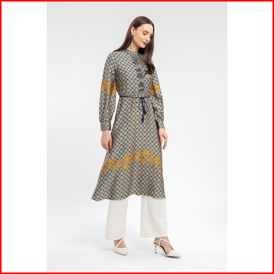 Minimal - Aqila - Gamis Wanita Motif Bunga Geometris - Navy