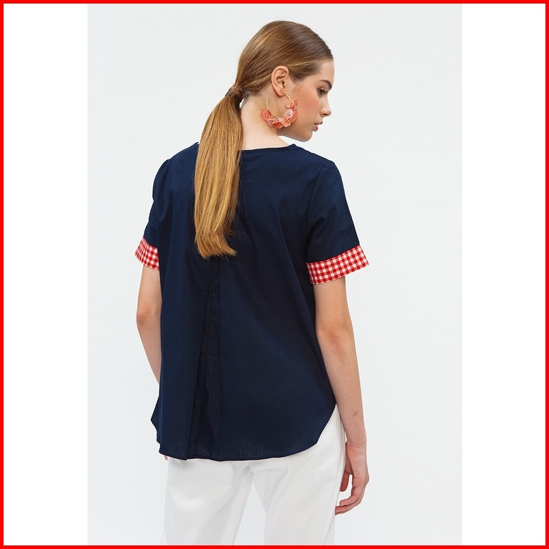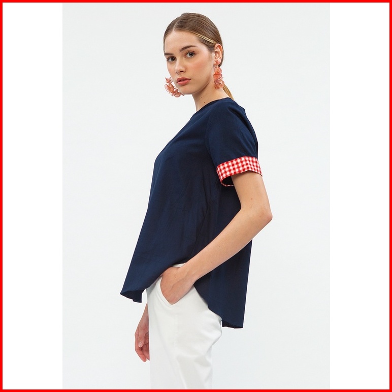 Minimal Contrast Cuff Top Wanita R Dark Navy