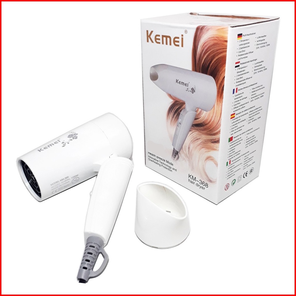 Kemei Hair Dryer Mini Lipat Cool Shot Alat Pengering Rambut 2 In 1