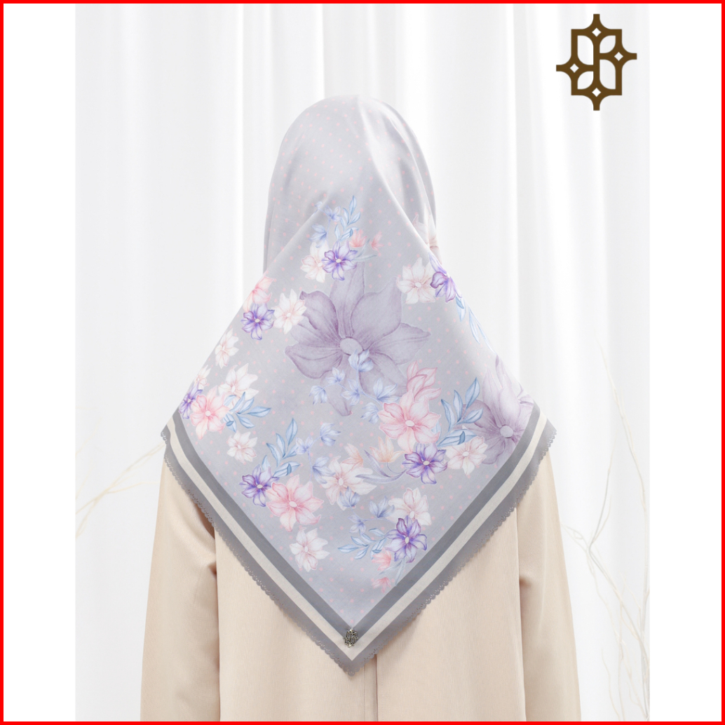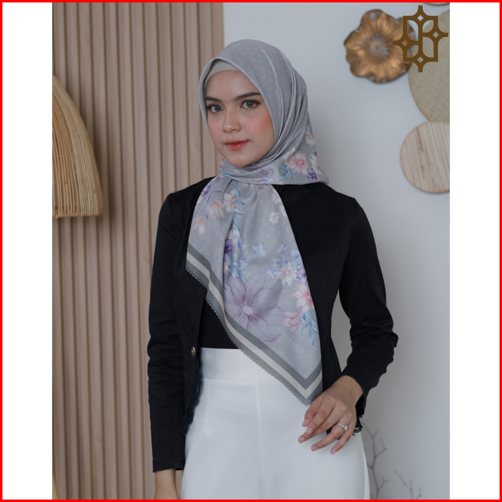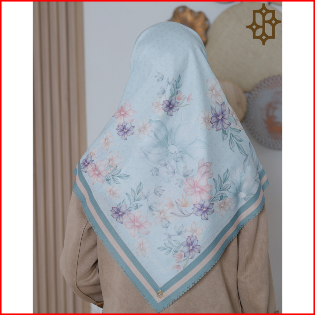 Saazz Hijab Fiore Blue Hijab Segiempat Wanita Motif Muslimah Kekinian