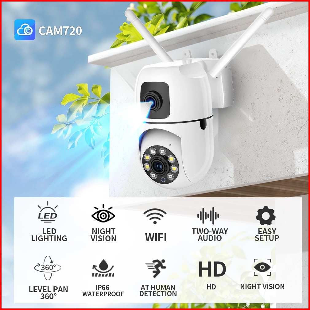 Cam720 Cctv Dual Lens 8mp Hd Camera Wireless Wifi Ptz Penglihatan Malam Suara Dua Arah Deteksi Gerakan Ip66 Outdoor Wate