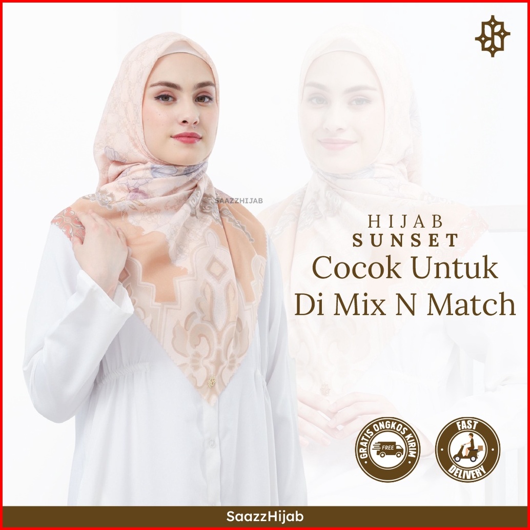Saaz Hijab Sunset Jilbab Printing Voal Premium Kerudung Segi Empat Motif Terbaru Fashion Muslimah