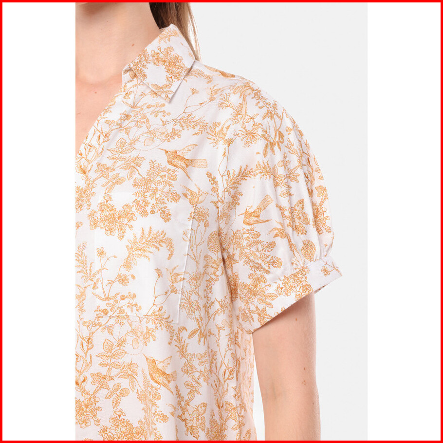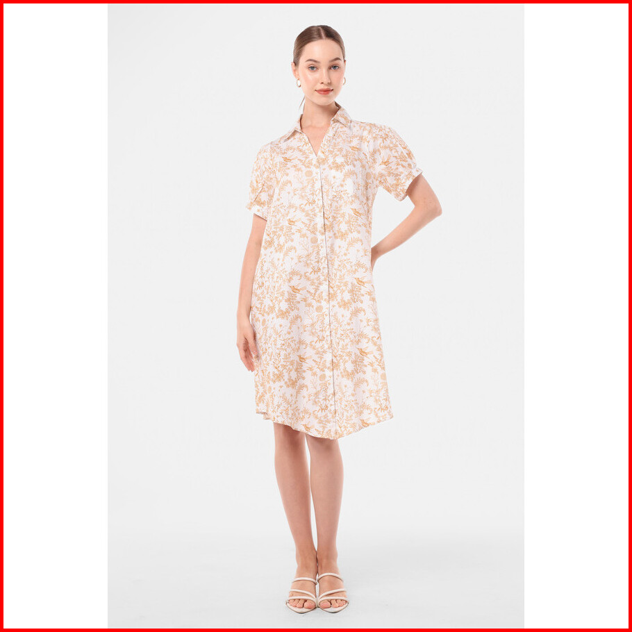 Minimal - Litzia - Dress Wanita Motif Bunga - Mustard