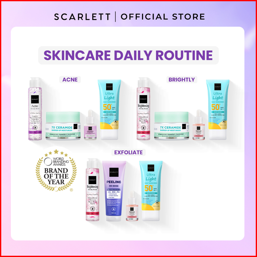 Scarlett Whitening 4pcs Skincare Daily Routine Acne Brightly Exfoliate